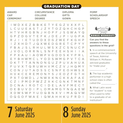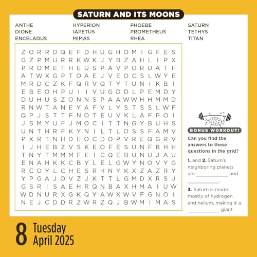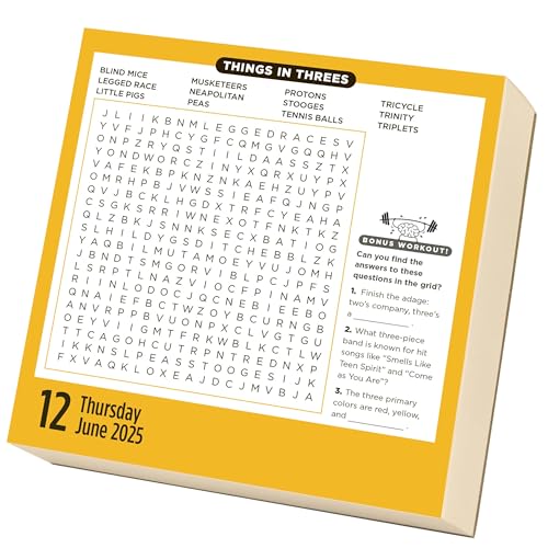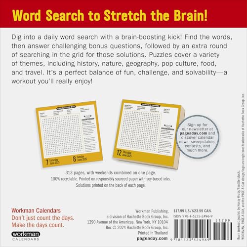 Daily word searches with a brain-boosting kick: each puzzle includes bonus questions to stretch your brain power! A WORKOUT FOR YOUR MIND: Find the words, then answer challenging bonus questions, followed by an extra round of searching in the grid for those solutions. ENJOYABLE THINKING EXERCISES: Puzzles cover a variety of themes, including history, nature, geography, pop culture, food, and travel. It’s a perfect balance of fun, challenge, and solvability! PLASTIC FREE: Printed on responsibly sourced paper and 100% recyclable.