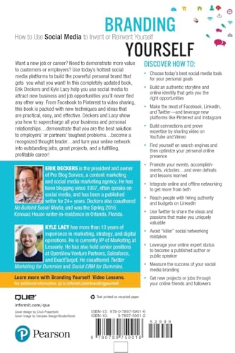 Want a new job or career? Need to demonstrate more value to customers or employers? Use today’s hottest social media platforms to build the powerful personal brand that gets you what you want! In this completely updated book, Erik Deckers and Kyle Lacy help you use social media to and networking to advance your career, grow your business, and land new job opportunities. From LinkedIn to Facebook, now including Instagram and SnapChat, this book is packed with new techniques and ideas that are practical, easy, and effective. Deckers and Lacy show you how to supercharge all your business and personal relationships…demonstrate that you are the best solution to employers’ or partners’ toughest problems…become a recognized thought leader…and turn your online network into outstanding jobs, great projects, and a fulfilling, profitable career! Discover how to: Choose today’s best social media tools for your personal goals Build an authentic storyline and online identity that gets you the right opportunities Make the most of Facebook, LinkedIn, and Twitter–and leverage new platforms like Pinterest and Google+ Build connections and prove expertise by sharing video on YouTube and Vimeo Find yourself on search engines and then optimize your personal online presence Promote your events, accomplishments, victories…and even defeats and lessons learned Integrate online and offline networking to get more from both Reach people with hiring authority and budgets on LinkedIn Use Twitter to share the ideas and passions that make you uniquely valuable Avoid “killer” social networking mistakes Leverage your online expert status to become a published author or public speaker Measure the success of your social media branding Get new projects or jobs through your online friends and followers