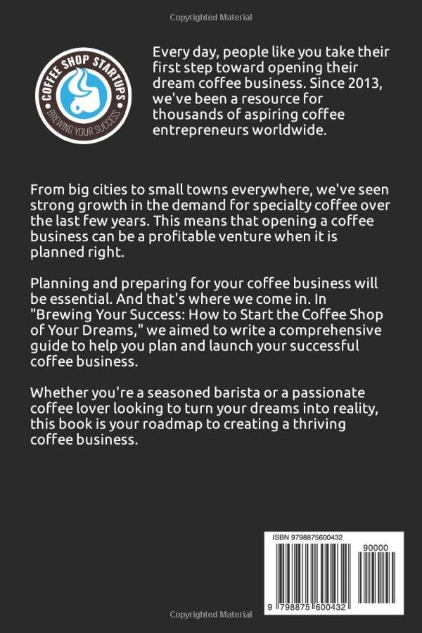 Have you dreamed of starting a coffee shop but didn’t know what it takes to succeed? Embark on a thrilling journey into the world of coffee entrepreneurship with our guide, “Brewing Your Success: How to Start the Coffee Shop of Your Dreams.” Whether you’re a seasoned barista or a passionate coffee lover looking to turn your dreams into business reality, this book is your roadmap to creating a thriving coffee business: Start a successful coffee shop with this comprehensive guide that covers everything from planning your coffee shop business, funding, location selection, choosing equipment, and working with vendors. If you need a clear-cut and modern guide on how to open a coffee shop in the United States, this is it. This “How to Start a Coffee Shop” guide aims to be the ultimate and complete resource for aspiring coffee business entrepreneurs. Your ultimate success depends on your level of preparation. This coffee shop business guide helps you understand and build a strong foundation to build your action plan. For over 11 years, we’ve helped thousands of successful coffee entrepreneurs start their dream business. We hope to help you, too! Now You Can Start a Coffee Shop of Your Dreams Strategic Planning: Craft a solid business plan tailored to the coffee industry, outlining your vision, target market, and financial projections. Transform Your Passion into Profit: Discover the essential steps to turn your love for coffee into a lucrative business. From selecting the perfect location to designing an irresistible menu, we guide you through every aspect of launching and managing your own coffee shop. Business Strategies for Coffee Shop Success: Navigate the complexities of the coffee industry with confidence. Learn effective marketing techniques, customer engagement strategies, and financial management tips to ensure your coffee shop not only survives but thrives in a competitive market. Your Coffee Shop Dream Awaits! Turn the page and embark on an exciting adventure of entrepreneurship. “Brewing Your Success: How to Start the Coffee Shop of Your Dreams” is the ultimate guide for aspiring coffee shop owners, providing the tools, knowledge, and inspiration needed to launch and sustain a successful coffee business. Get ready to brew your success confidently and launch a coffee shop that captivates hearts and satisfies the most discerning coffee connoisseurs. Your adventure begins now!