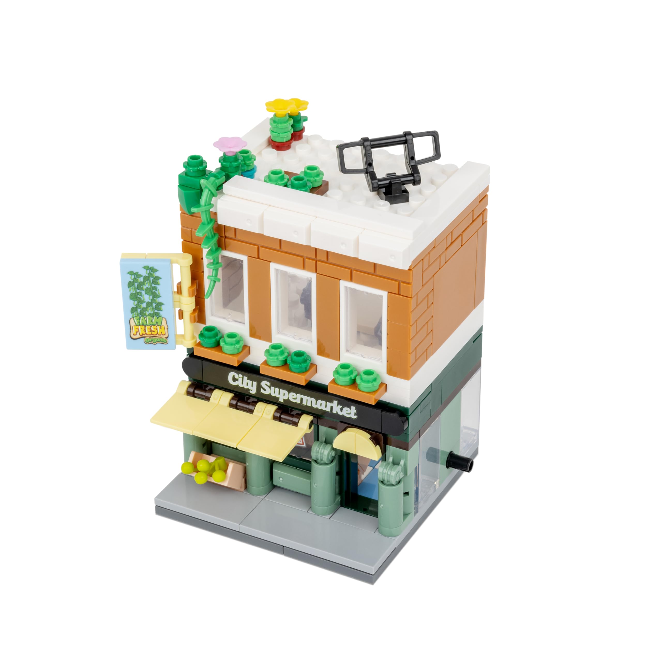 Bring mini city building to the next level with this detailed 253 piece grocery store set. Kids can spend hours designing, constructing and playing with the miniature market. The set includes shelves fully stocked with pretend food items, a checkout counter, and accessories that allow for realistic role play scenarios. Walls, roof, and other structures are easy to assemble for young builders. Once complete, the mini grocery comes to life as an interactive play space where imagination runs wild. Future city planners will enjoy expanding their micro metropolis one themed building at a time. Suitable for ages 6 and up, this set provides an engaging creative outlet that also supports the development of fine motor and problem solving skills.