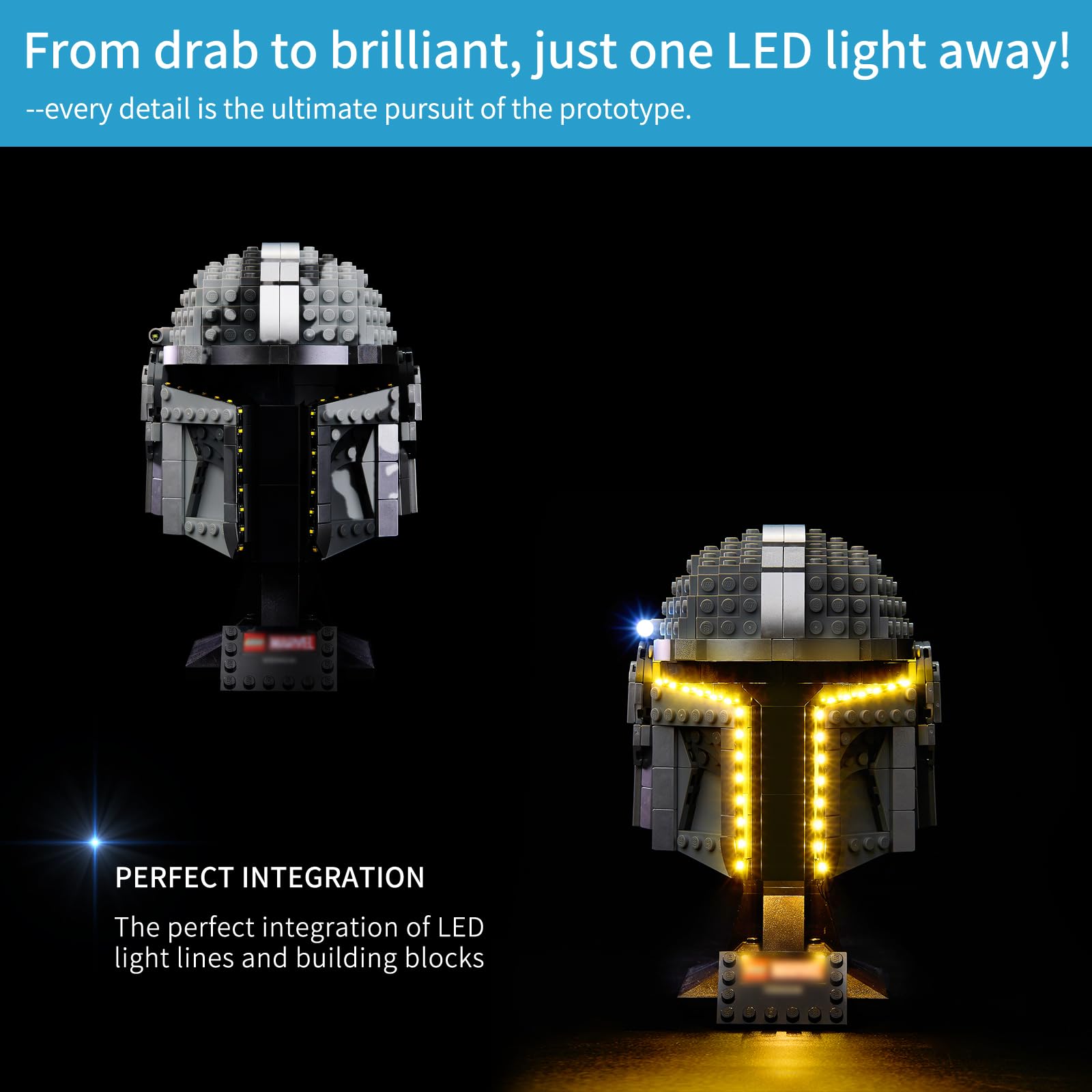 - [(Perfectly adapted to Lego)] :Our light set tailored to the different structural characteristics of lego star wars helmet blocks, the led light kit for Lego helmet of the lighting layout ensures that every detail is perfectly illuminated and all perfectly integrated to enhance the overall visual effect