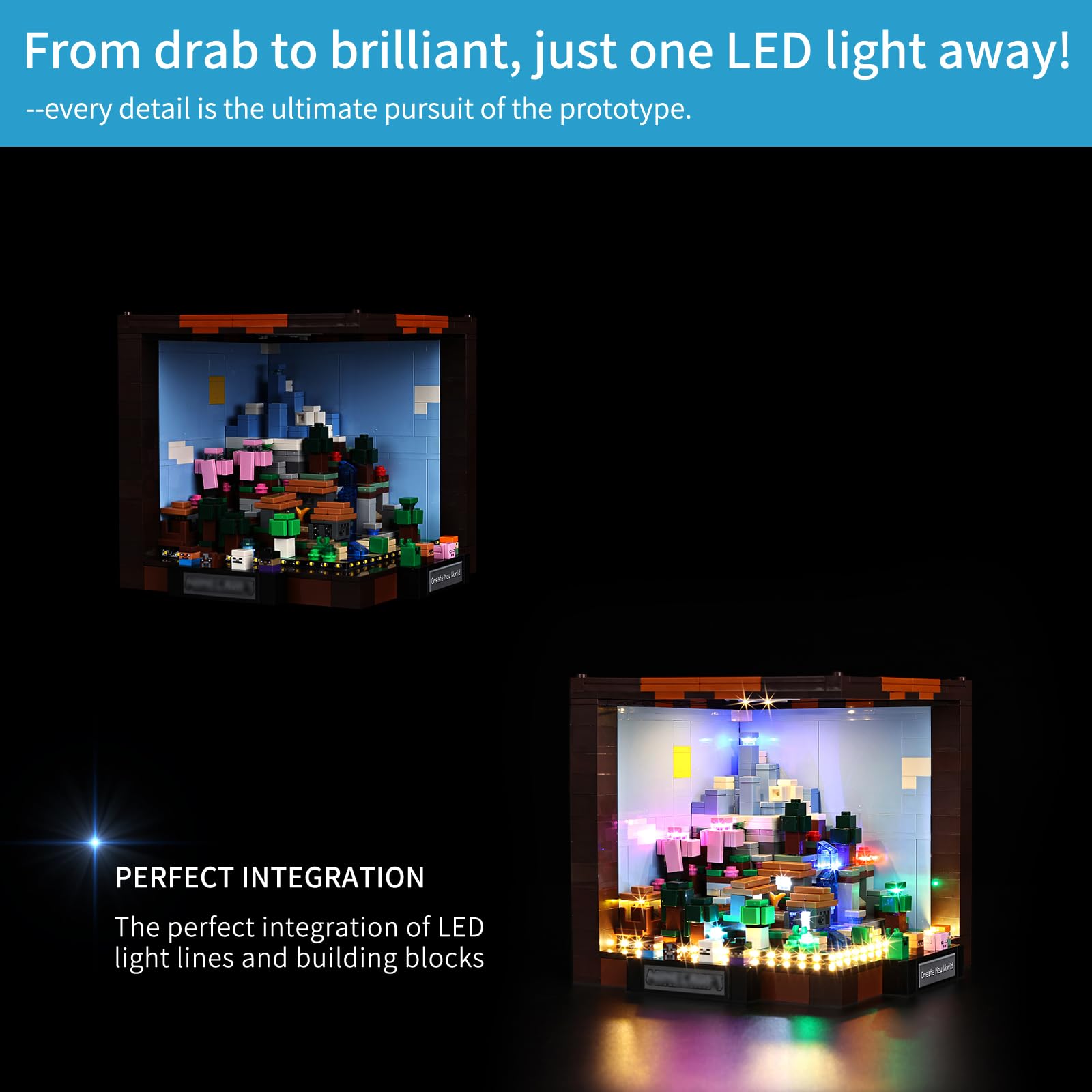 - [(Easy and quick installation)] : Our led lighting kit for minecraft lego crafting table is equipped with detailed illustrated manuals, so even first-time novices can easily get started, avoid installation troubles and enjoy DIY fun.(NOT include the lego Set)