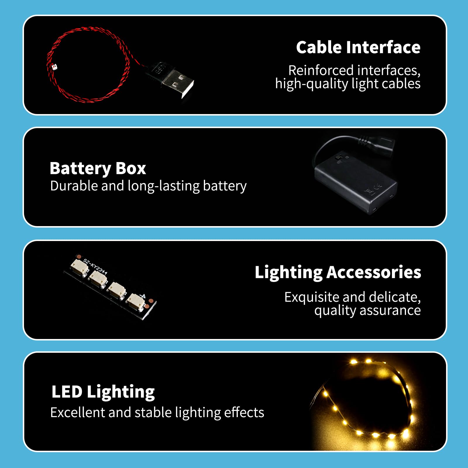 - [(Safe and durable performance)] : Our minecraft crafting table lego light kit made of high-quality materials and the wire thickening design ensures safe use by decreasing the risk of breakage during installation. Meanwhile, the usb cable can accept more power supply, enables longer battery life, say goodbye to frequent replacement troubles.
