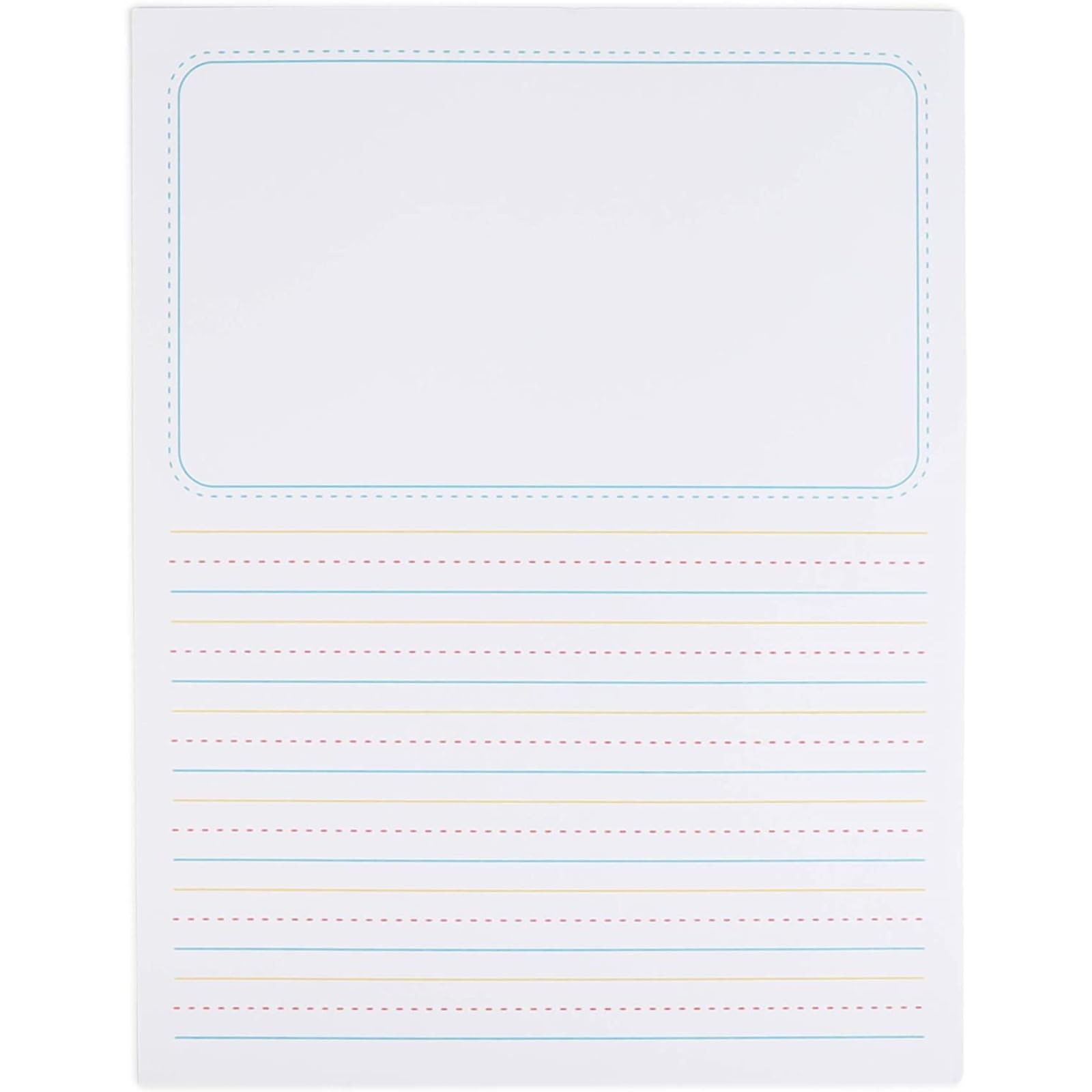 Give your students and children tools to create stories and let their imaginations run. This value pack of kids lined story paper is a great way to practice handwriting and drawing. With its high-quality construction, kids can write their own fairy tales, tell a story, or simply practice writing at home and at school. This pack contains 150 sheets of white paper.