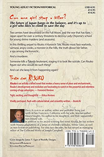 Can one girl stop a killer? The future of Japan hangs in the balance, and it’s up to a girl who likes to climb to save the day Two armies have descended on the Full Moon, and the war that has torn Japan apart for over a century threatens to destroy Lady Chiyome’s school for young shrine maidens (and assassins). In this thrilling sequel to Risuko: A Kunoichi Tale, Risuko must face warlords, samurai, angry cooks, a monster in the hills, the truth about her father, a spy among the kunoichi… And a murderer. Someone kills a Takeda lieutenant, staging it to look like suicide. Can Risuko figure out who would do such thing? And can she keep it from happening again? Praise for Bright Eyes “Bright Eyes is imaginative, original, exceptionally well written, and highly recommended” – Midwest Book Review “An enthralling. unputdownable tale! […] The well-crafted mystery, well-honed history and world-building, and Risuko’s adventurousness leave the reader wanting more.” — Shailyn Rogers, Ind’Tale Magazine “The author crafts a highly unique and captivating world in the pages of Bright Eyes.” — BookLife