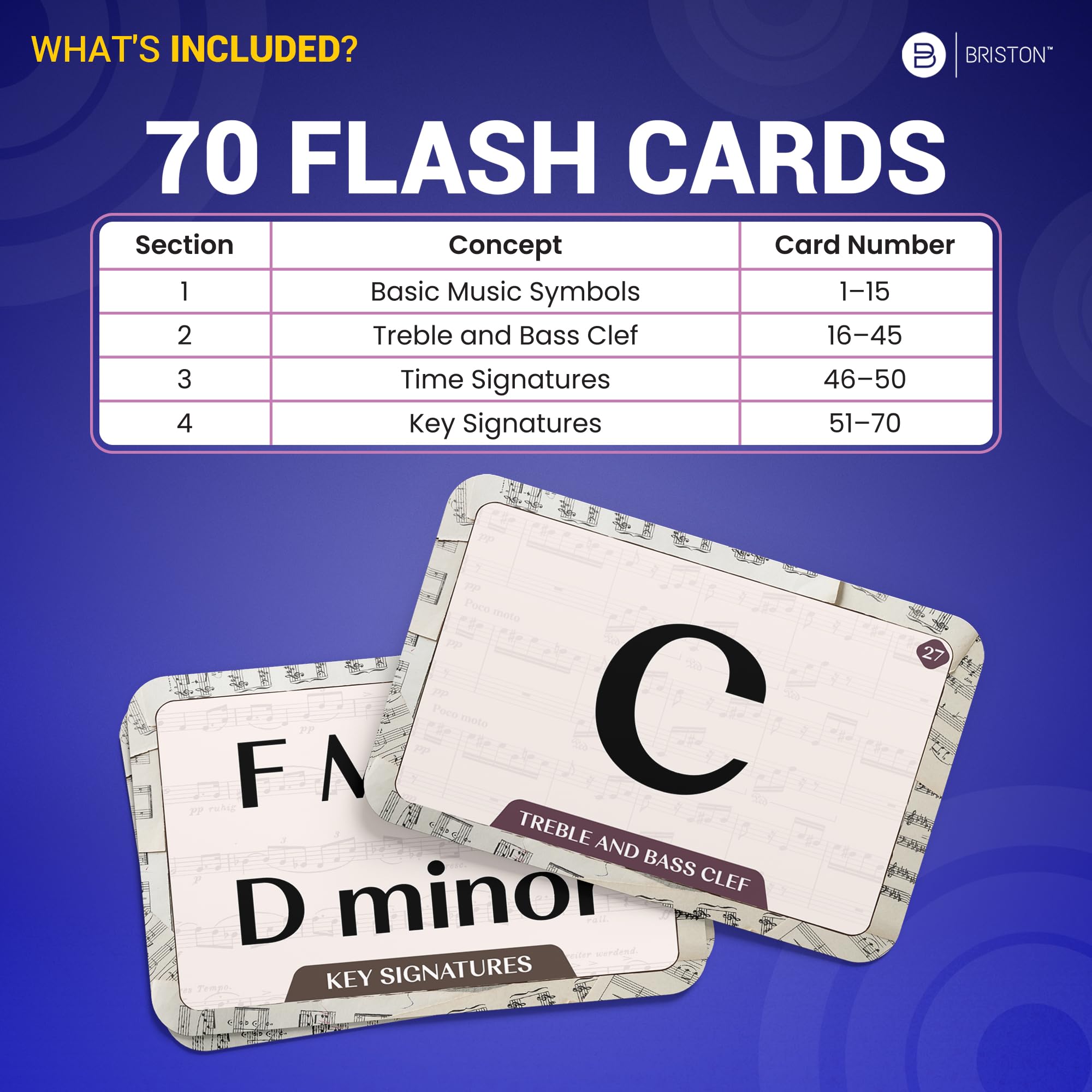• COMPREHENSIVE BEGINNER: The Briston Beginner Musicians 70 flashcards set is crafted for aspiring musicians of all ages, offering a full suite of music notation essentials. These playing cards cover key music theory fundamentals, including note values, time signatures, and key signatures, making music reading accessible. Perfect as music flash cards for piano or band, they build foundational skills for new students and rekindle learning for hobbyists alike