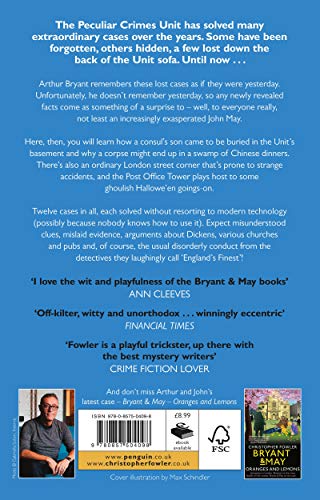 ‘Winningly eccentric . . . London, in all its non-homogenous, sprawling splendour, is as much a character as Fowler’s sleuthing duo’ Barry Forshaw, Financial Times The Peculiar Crimes Unit has solved many extraordinary cases over the years, but some were hushed up and hidden away. Until now. Arthur Bryant remembers these lost cases as if they were yesterday. Unfortunately, he doesn’t remember yesterday, so the newly revealed facts could come as a surprise to everyone, including his exasperated partner John May. Here, then, is the truth about the Covent Garden opera diva and the seventh reindeer, the body that falls from the Tate Gallery, the ordinary London street corner where strange accidents keep occurring, the consul’s son discovered buried in the unit’s basement, the corpse pulled from a swamp of Chinese dinners, a Hallowe’en crime in the Post Office Tower, and the impossible death that’s the fault of a forgotten London legend. All of the unit’s oddest characters are here, plus the detectives’ long-suffering sergeant Janice Longbright gets to reveal her own forgotten mystery. These twelve crimes must be solved without the help of modern technology, mainly because nobody knows how to use it. Expect misunderstood clues, lost evidence, arguments about Dickens, churches, pubs and disorderly conduct from the investigative officers they laughingly call ‘England’s Finest’! _______________________ What readers are saying: ***** ‘Another gem from Christopher Fowler’ ***** ‘I’ve loved Bryant & May since I first discovered them’ ***** ‘A perfect collection of implausibly, improbably impossible mysteries for readers of Bryant and May both old and new’