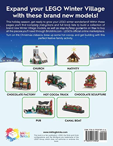 Expand your LEGO Winter Village with these brand new models! This holiday season, get ready to grow your LEGO winter wonderland! Within these pages you’ll find complete instructions and full brick lists to build a collection of brand new Winter Village models, as well as step-by-step guidance on how to buy all the pieces you’ll need through Bricklink.com – LEGO’s official online marketplace. In this book, create the ultimate quaint and cozy Christmas town with instructions for: a Chocolate Factory a Hot Cocoa Truck a Chocolate Sculpture a Church a Nativity a Canal Boat a Pub Turn on the Christmas classics, brew up some hot cocoa, and get building with this perfect festive family activity.