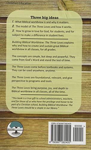 Building Biblical Worldview: The Three Loves explains why and how to create and sustain great Biblical worldview in all classes, for all grades.The concepts are simple, but deep and powerful. They come from God’s Word and stand the test of time.The Three Loves come before textbooks and systems. The can be used anywhere, anytime.The Three Loves are foundational, relevant, and give perspective to other programs and tools.The Three Loves bring purpose, joy, and depth to Biblical worldview in all classes, all of the time.Three big ideas in the book: What Biblical worldview is and why it matters. The model and how it works. How to grow in love for God, for students, and for subject to make a difference in student lives.