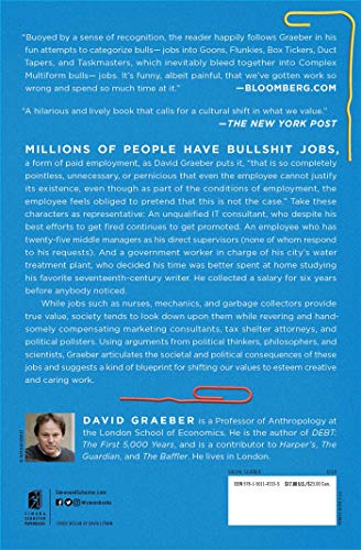 From David Graeber, the bestselling author of The Dawn of Everything and Debt–“a master of opening up thought and stimulating debate” (Slate)–a powerful argument against the rise of meaningless, unfulfilling jobs…and their consequences. Does your job make a meaningful contribution to the world? In the spring of 2013, David Graeber asked this question in a playful, provocative essay titled “On the Phenomenon of Bullshit Jobs.” It went viral. After one million online views in seventeen different languages, people all over the world are still debating the answer. There are hordes of people–HR consultants, communication coordinators, telemarketing researchers, corporate lawyers–whose jobs are useless, and, tragically, they know it. These people are caught in bullshit jobs. Graeber explores one of society’s most vexing and deeply felt concerns, indicting among other villains a particular strain of finance capitalism that betrays ideals shared by thinkers ranging from Keynes to Lincoln. “Clever and charismatic” (The New Yorker), Bullshit Jobs gives individuals, corporations, and societies permission to undergo a shift in values, placing creative and caring work at the center of our culture. This book is for everyone who wants to turn their vocation back into an avocation and “a thought-provoking examination of our working lives” (Financial Times).