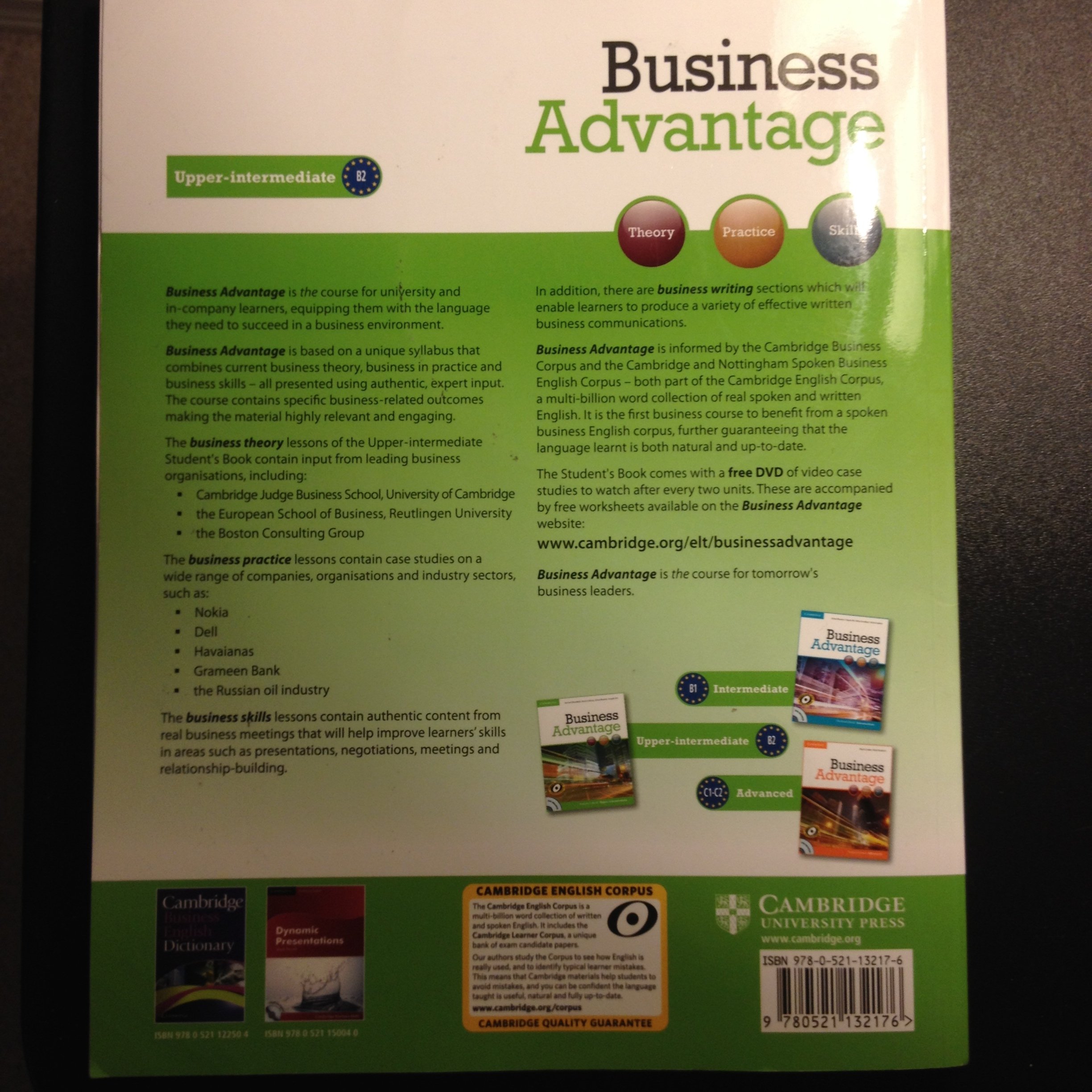 An innovative, new multi-level course for the university and in-company sector. Business Advantage is the course for tomorrow’s business leaders. Based on a unique syllabus that combines current business theory, business in practice and business skills – all presented using authentic, expert input – the course contains specific business-related outcomes that make the material highly relevant and engaging. The Business Advantage Upper-intermediate level books include input from the following leading institutions and organisations: the Cambridge Judge Business School, the Boston Consulting Group, Nokia, Dell, and Havaianas – to name but a few. The Student’s Book comes with a free DVD of video case studies.