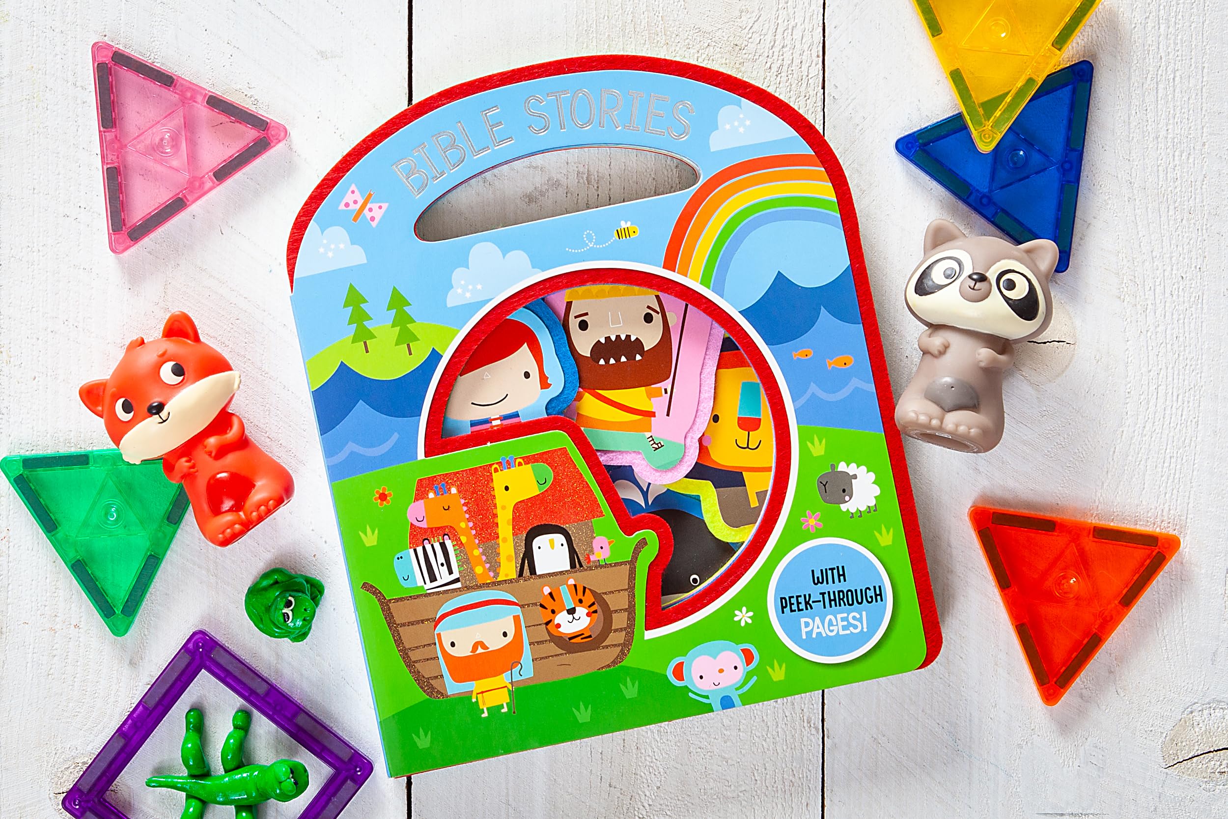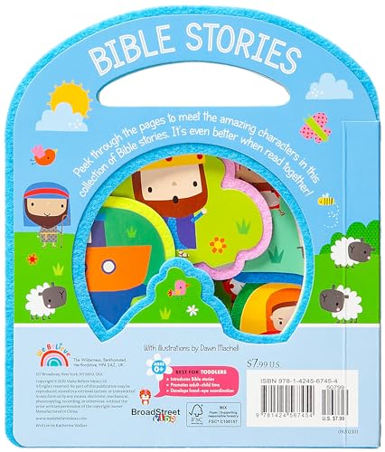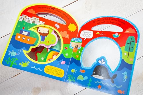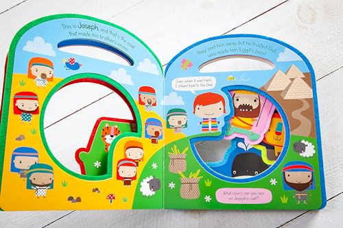 This cut-out board book is perfect for introducing the stories of the Bible to little ones. Simple text is reinforced with fun activities encouraging children to engage with each story. The carry-me handle is perfect for taking the book with you wherever you go. Features: Packed with Bible stories for young children. Shaped pages are perfect for little hands to explore. Bright illustrations make this book a joy for any reader. Sturdy board pages are durable and easy for tiny hands to hold. Carry-me handle makes it perfect for on-the-go entertainment.