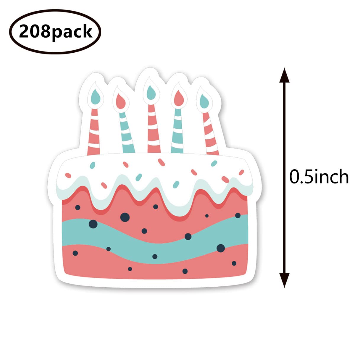 Cake Planner Stickers, 0.5in Birthday Reminder Stickers for Scrapbooking Calendar Crafting 208-Pack