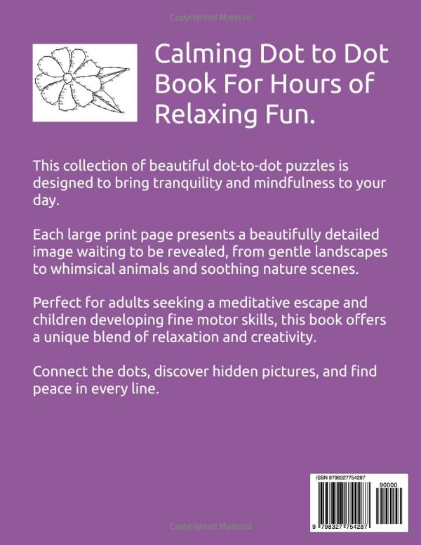 Amazing Large Print Dot to Dot Book For All Puzzle Lovers! This easy to read large print connect the dots book for adults, seniors, teen and kids is perfect for people who like to relax joining the dot-to-dots of beautiful scenes such as seasons, animals, landscapes, flowers and more. Each easy Dot-To-Dot picture is printed on its own 8.5 x 11 inch page. So make one of the best decisions this year and get your copy of this great Calming Dot to Dot Book For Adults while you still can.