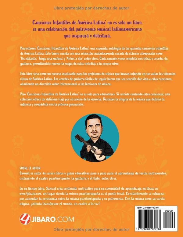 Presentamos ‘Canciones Infantiles de America Latina’, una exquisita antologia de las queridas canciones infantiles de America Latina. Este tesoro cuenta con una seleccion cuidadosamente curada de clasicos atemporales como ‘Un elefante’, ‘Tengo una muneca’ y ‘Ambos a dos’, entre otros. Cada cancion viene completa con letras y acordes de guitarra, permitiendote recrear la magia de estas melodias a tu propio ritmo. Este libro sirve como un recurso invaluable para los profesores de musica que buscan infundir en sus aulas los vibrantes ritmos de America Latina. Los acordes de guitarra faciles de seguir hacen que sea sencillo dar vida a estas canciones, anadiendo un divertido sabor internacional a las lecciones de musica. Pero ‘Canciones Infantiles de America Latina’ no es solo para educadores. Si creciste cantando estas canciones, esta coleccion ofrece un delicioso viaje por el camino de la memoria. Descubre la alegria de la musica que definio tu infancia y compartela con la proxima generacion. Sumergete en la rica herencia musical de America Latina con ‘Canciones Infantiles de America Latina’. Es mas que un libro, es un viaje a traves del sonido y la nostalgia.