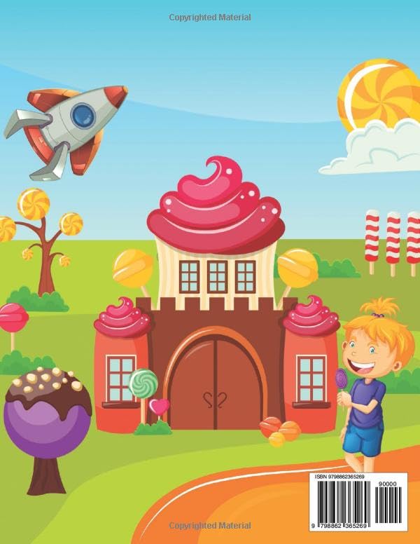 Step into a world of sugary wonder with “Candyland Adventure Activity Book For Kids Ages 4 to 8.” This delightful and engaging book is designed to transport your child to a whimsical realm filled with sweet surprises and creative challenges. Inside, your young adventurer will uncover a delectable array of: 10 enchanting coloring pages, perfect for bringing sugary landscapes and delightful characters to life with a burst of vibrant colors. From candy castles to sugarcane forests, the possibilities are as endless as their imagination. 10 tricky mazes that will take them on a thrilling journey, testing their problem-solving skills and spatial awareness. 10 connect-the-dots activities that, once completed, reveal scrumptious treats just waiting to be colored. 10 word searches filled with candy-related words, designed to enhance their vocabulary while having a sweet time. But the candy-coated adventure doesn’t stop there! As a special treat, you’ll receive a bonus of 10 additional coloring pages to keep the excitement alive!! All colouring pages are printed single-sided to prevent any color bleed-through, and they’re generously sized at 8.5 x 11 inches, providing plenty of room for creativity to flourish. Beyond the sweet thrills, this activity book offers numerous benefits, including: Improved concentration and engagement. Reduced screen time and imaginative play. Motor development and enhanced hand-eye coordination as they navigate through intricate mazes and connect the dots. A sense of personal accomplishment as they complete each delightful activity. Learning through fun, which has never been so scrumptiously exciting! So, get ready to embark on a candy-filled adventure with your child. The “Candyland Adventure Activity Book” promises hours of sweet fun and skill development on each enchanting page. Prepare to watch your child’s creativity shine brighter than a candy-filled rainbow!