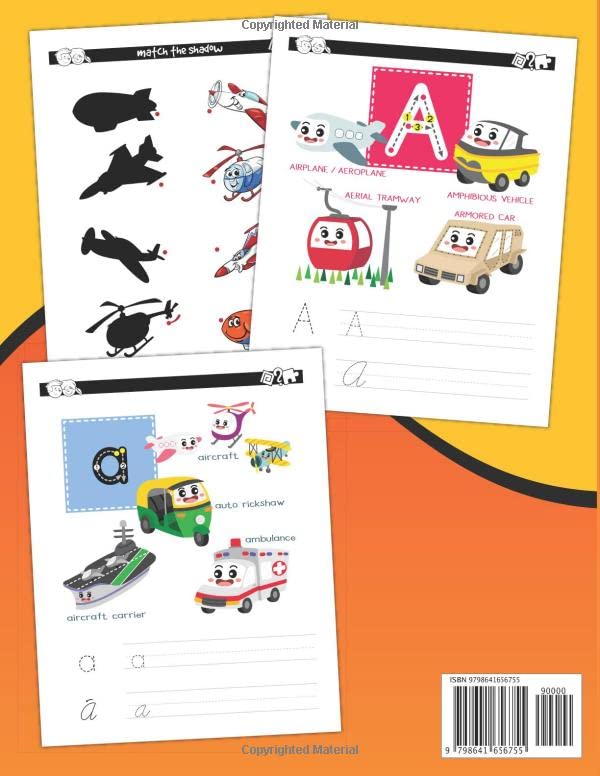 This activity book helps young children practice letter tracing and writing while engaging with vehicle-themed illustrations.