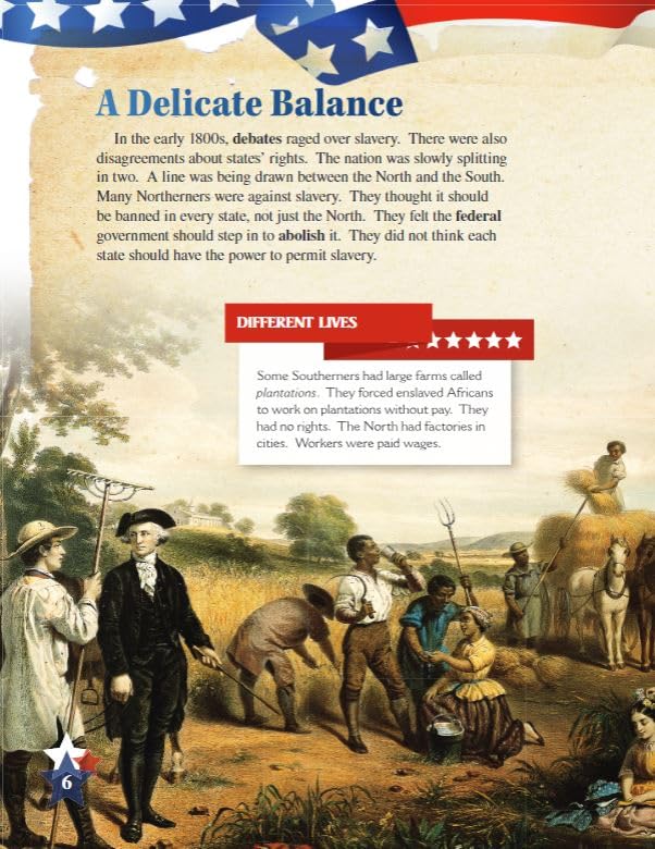 The Causes of the Civil War: A House Divided primary source reader builds literacy skills while offering engaging content across social studies subject areas. Primary source documents provide an intimate glimpse into what life was like during the 1800s. This nonfiction reader can be purposefully differentiated for various reading levels and learning styles. It contains text features to increase academic vocabulary and comprehension, from captions and bold print to index and glossary. The “Your Turn!” activity will continue to challenge students as they extend their learning. This text aligns to state standards as well as McREL, WIDA/TESOL, and the NCSS/C3 Framework.
