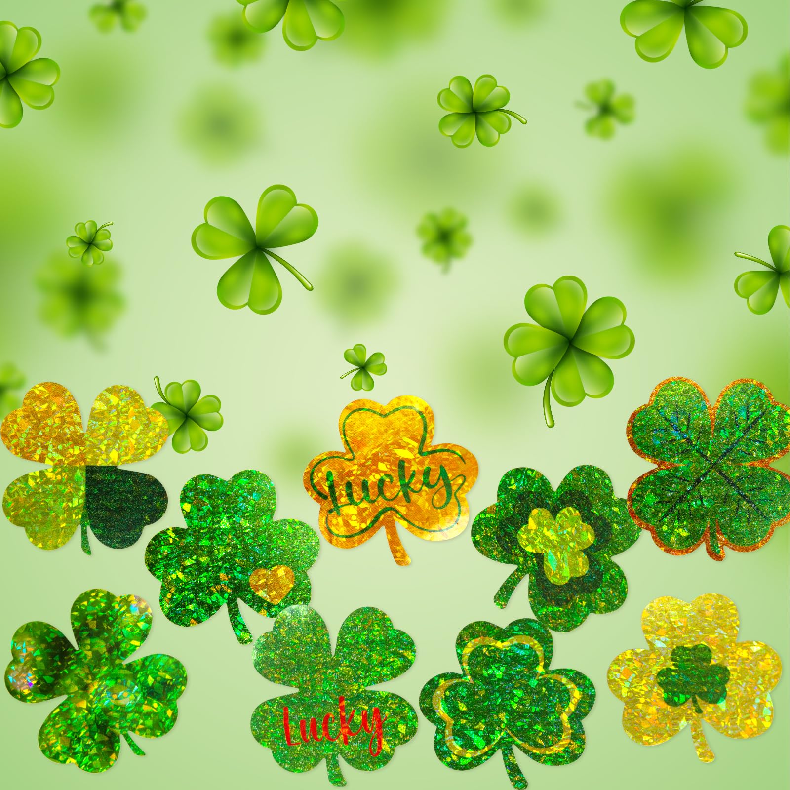 - What You Get – 500Pcs glitter shamrock stickers per roll. 1 1/2″. 9 different designs.
