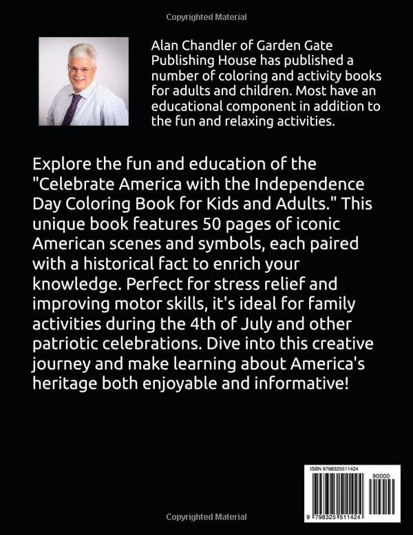 Discover the joy of coloring and learning with “Celebrate America with the Independence Day Coloring Book for Kids and Adults: Quick, Easy Patriotic Coloring for Stress-Free Family Fun & Learning.” This unique coloring book features 50 pages of iconic American symbols and scenes, from flags and fireworks to picnics and parades. Each page includes a fascinating historical fact about America, enhancing both your knowledge and appreciation of the nation’s heritage. Designed for stress relief and educational engagement, it’s perfect for family activities, improving motor skills, and celebrating American independence in a creative way. Dive into this artistic journey and make your 4th of July celebration both fun and informative! This book is great for any patriotic American holiday including Memorial Day, 4th of July, and Veterans Day.