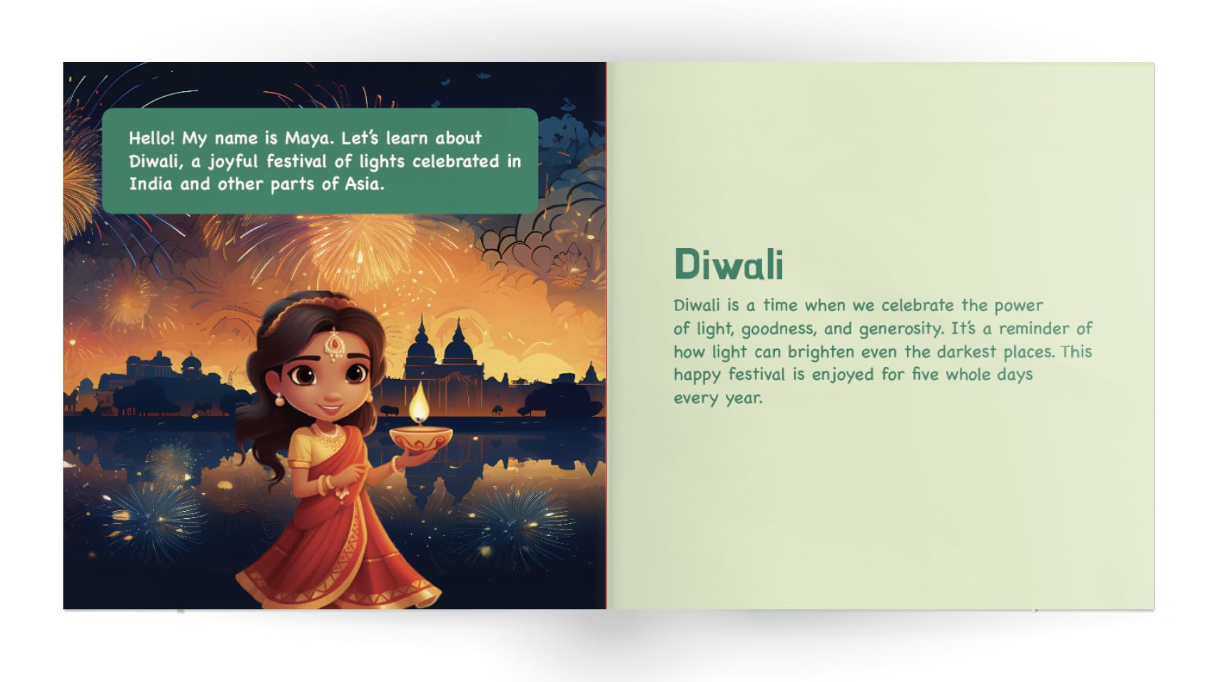 • Educational and Fun: Includes interactive activities that encourage children to learn through play, enhancing their understanding of cultural traditions and global diversity. Beautiful Illustrations: Features vivid, high-quality illustrations that captivate young readers and bring each festival to life, keeping them engaged throughout the book. Aligned with Educational Standards: Supports critical thinking, language development, and cultural respect, aligned with Common Core, NAEYC, and He
