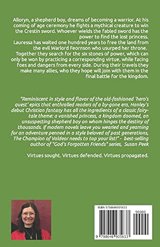 At his coming of age ceremony, Alloryn faces a mythical creature to win a fabled sword, is taken under the wing of a mysterious mentor, and sets out to find the lost Princess.Lauressa’s quest is to free the land from the evil warlord, Feornson, who usurped her throne.Together they search for six stones of power, which can only be won by practicing a corresponding virtue.During their travels, they face foes and dangers from every side. They also make many allies, who they hope will join them in the final battle for the kingdom.