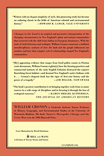 The book that launched environmental history, William Cronon’s Changes in the Land, now revised and updated. Winner of the Francis Parkman Prize In this landmark work of environmental history, William Cronon offers an original and profound explanation of the effects European colonists’ sense of property and their pursuit of capitalism had upon the ecosystems of New England. Reissued here with an updated afterword by the author and a new preface by the distinguished colonialist John Demos, Changes in the Land, provides a brilliant inter-disciplinary interpretation of how land and people influence one another. With its chilling closing line, “The people of plenty were a people of waste,” Cronon’s enduring and thought-provoking book is ethno-ecological history at its best.