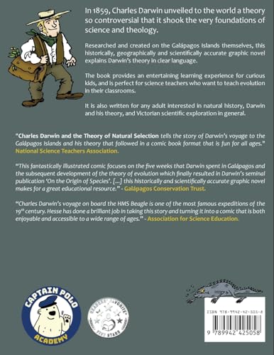 In 1859, Charles Darwin unveiled to the world a theory so controversial that it shook the very foundations of science and theology. If you are a fan of Tintin, Maus or the popular Science Comics series you will love Charles Darwin and the Theory of Natural Selection. “Have you been searching for a fun and understandable way to introduce natural selection and evolution in your classroom? Look no further! Charles Darwin and the Theory of Natural Selection tells the story of Darwin’s voyage to the Galapagos Islands and his theory that followed in a comic book format that is fun for all ages.” – National Science Teachers Association. For most people, Darwin’s ground-breaking legacy remains shrouded in controversy. The detailed mechanics of the Theory of Evolution are largely confined to Life Science academics and professionals. Yet Darwin’s work is still the best explanation we have for the fabulous diversity of life on Earth, and it is rightly present in the science education curriculum the world over. Researched and created on the Galapagos Islands themselves, this historically, geographically and scientifically accurate graphic novel explains Darwin’s theory in clear language, and provides thoroughly researched insight into Darwin’s thought process and the pressures he had to deal with. As an educational resource, the book provides an entertaining learning experience for curious kids, and is perfect for science teachers who want to teach evolution in their classrooms. It is also great for any adult interested in natural history, Darwin and his theory, and Victorian scientific exploration in general. Charles Darwin: the comic What you will discover: How the field observations made by Darwin and his crew while visiting the legendary Galapagos islands eventually led to the Theory of Natural Selection How Darwin tapped into the scientific minds of his time and related with his peers Darwin’s inner struggle while developing his work, including the dilemma he faced as a God-fearing Christian The little-known truth behind how the Theory of Natural Selection was actually stumbled upon How the Theory actually works, explained in simple language and with cartoon illustrations Extend your knowledge and that of your kids in finally understanding the only scientific explanation for Life on Earth by traveling back in time to enter the mind of Charles Darwin!