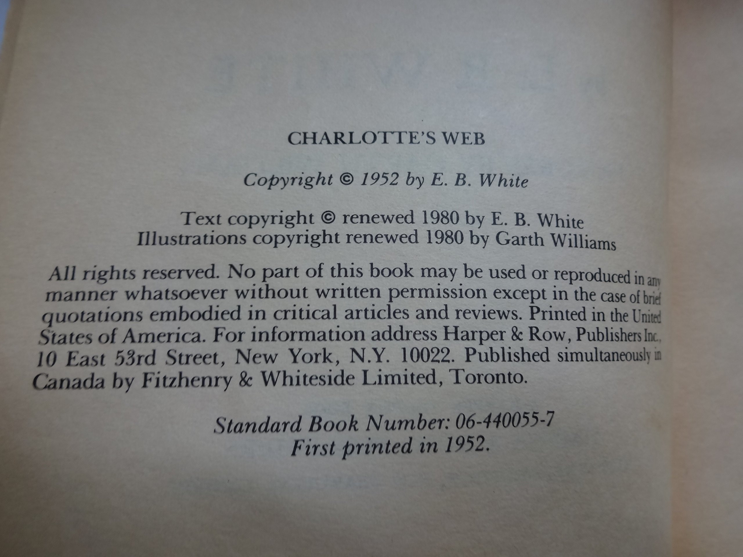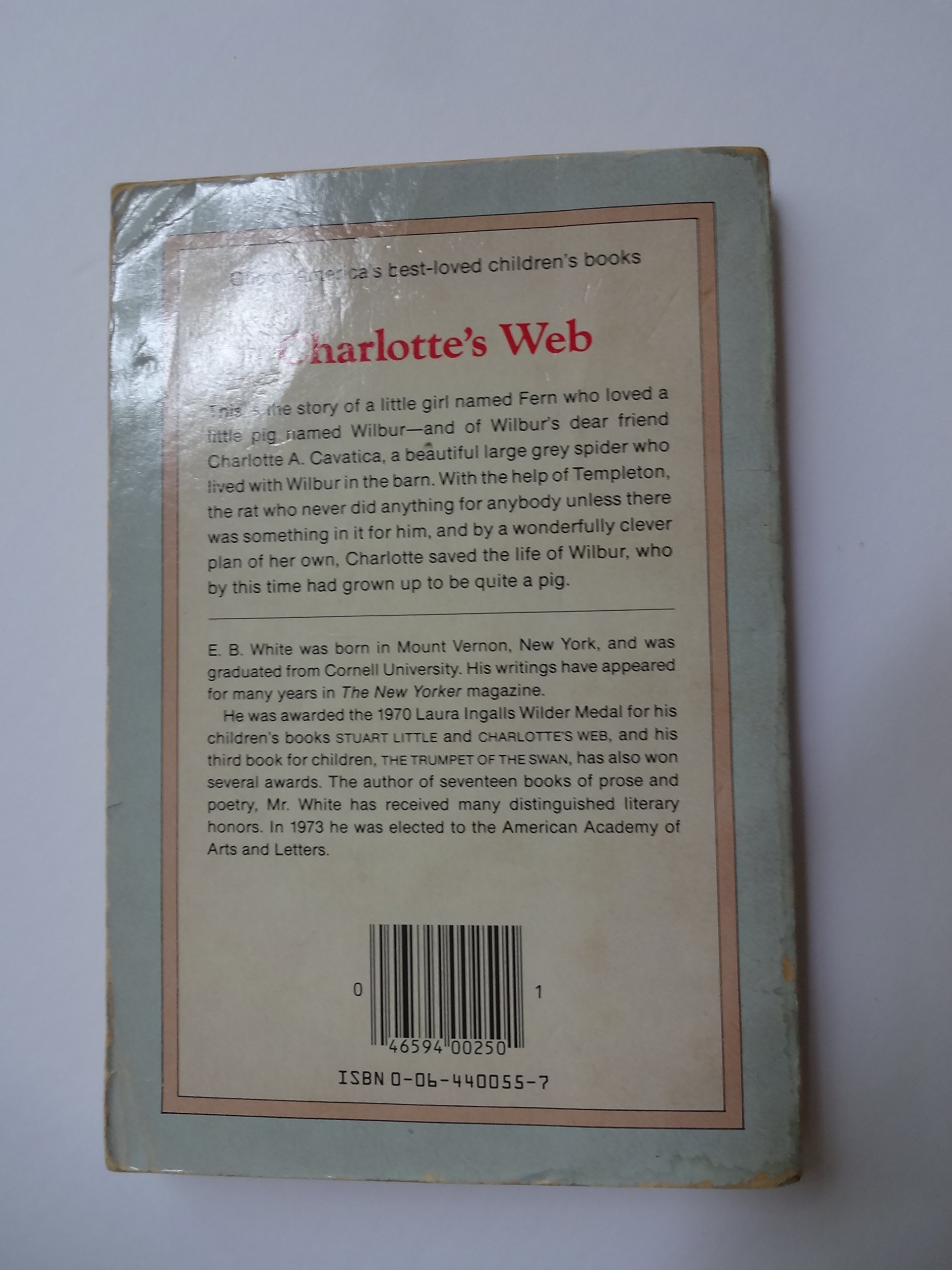 Charlotte s Web is the story of a little girl named Fern who loved a little pig named Wilburand of Wilbur s dear friend Charlotte, a beautiful large grey spider who lived with Wilbur in the barn. With the help of Templeton, the rat who never did anything for anybody unless there was something in it for him, and by a wonderfully clever plan of her own, Charlotte saved the life of Wilbur, who by this time had grown up to quite a pig. How all this comes about is E. B. White s story of the magic of childhood on the farm. The forty-seven black-and-white drawings by Garth Williams have all the wonderful detail and warmhearted appeal that children love in his work. Recommended in Laura Berquist First Grade Syllabus, Laura Berquist Third Grade Syllabus Author: E. B. White Format: 192 pages, paperback Ages: 8+ Publisher: Harper Collins