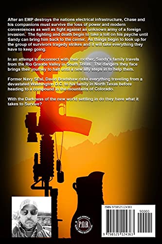 After an EMP destroys the nations electrical infrastructure, Chase and his companions must survive the loss of power and modern conveniences as well as fight against an unknown army of a foreign invasion. The fighting and death begin to take a toll on his psyche until Sandy can bring him back to the center. As things begin to look up for the group of survivors tragedy strikes and it will take everything they have to keep going. In an attempt to reconnect with their mother, Sandy’s family travels from the Rio Grande Valley in South Texas. The dangers they face brings their journey to halt until a new ally steps in to help them. Former Navy SEaL David Bradshaw risks everything traveling from a devastated Washington D.C. to his family in North Texas before heading to a compound in the mountains of Colorado. With the Darkness of the new world settling in do they have what it takes to Survive.