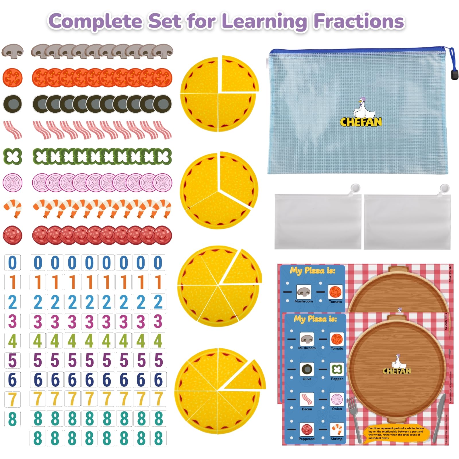 - Mastering Fractions with Ease:CHEFAN pizza fraction fun games is the perfect educational gift for kids,parents,teachers and educators.Great for learning at school or at home!These fraction math manipulatives make learning fractions easy and fun for elementary school students.