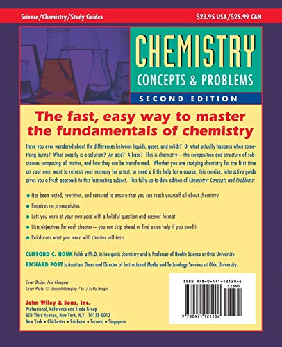 CHEMISTRY SECOND EDITION The fast, easy way to master the fundamentals of chemistry Have you ever wondered about the differences between liquids,gases, and solids? Or what actually happens when something burns?What exactly is a solution? An acid? A base? This is chemistry–thecomposition and structure of substances composing all matter, andhow they can be transformed. Whether you are studying chemistry forthe first time on your own, want to refresh your memory for a test,or need a little help for a course, this concise, interactive guidegives you a fresh approach to this fascinating subject. This fullyup-to-date edition of Chemistry: Concepts and Problems: * Has been tested, rewritten, and retested to ensure that you canteach yourself all about chemistry * Requires no prerequisites * Lets you work at your own pace with a helpful question-and-answerformat * Lists objectives for each chapter–you can skip ahead or findextra help if you need it * Reinforces what you learn with chapter self-tests