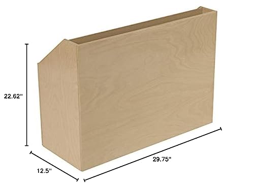 - The four large compartments hold approximately 80 big books, which is a great place for storing posters and large items. Comes assembled. Improved unit includes wood-grain back panel. Measures 29-3/4 W x 12-1/2 D x 22-5/8 H inches. Weighs 33 pounds. Made with dado construction and 4-coat UV acrylic finish. Offers a lifetime guarantee against manufacturing defects.