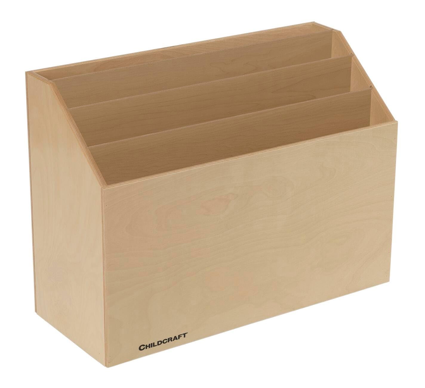 The four large compartments hold approximately 80 big books, which is a great place for storing posters and large items. Comes assembled. Improved unit includes wood-grain back panel. Measures 29-3/4 W x 12-1/2 D x 22-1/4 H inches. Weighs 33 pounds. Three-coat, UV-cured, acrylic finish holds up to repeated cleanings and resists marks from pens, paints, crayons, solvents, cleaners, and bleach. Offers a lifetime guarantee against manufacturing defects.