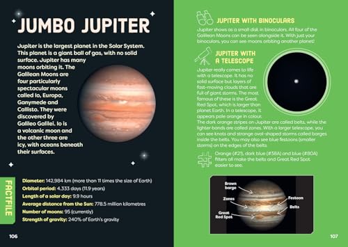 Explore the night sky with this fact-packed guide to astronomy for children aged 7+. From planets to meteor showers, stars to satellites, kids will learn how, where, and when to see 100 things in space using binoculars, a telescope, or just their eyes. Written by astronomer, Tom Kerss, and in partnership with the National Space Centre, it contains handy tips, easy-to-use star charts for each season and amazing facts about our solar system along the way. Discover constellations, star colors and how to find true north Explore planets, comets and asteroids Find out about the moon’s orbit and phases and how to view lunar eclipses Learn how to take amazing photographs of the night sky.