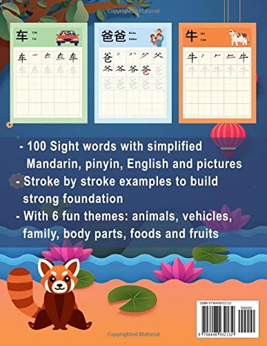 Are you or your child learning Chinese? We know that it could be daunting – each stroke’s starting point, direction, and order matter. But learning it doesn’t have to be hard. This Sight Words Practice is designed to teach the correct way to write Chinese. Inside, you will find: 100 Sight words with cute characters to attract and keep your child’s attention With pinyin spelling, English translation and a picture for each character 5 traceable characters for practice Stroke by stroke examples for each character Full color interiors with big fonts – ideal for children and adults 6 word families: animals, family members, foods, vehicles, body parts, fruits With words carefully selected so that they can be repeated in daily lives Learn while having a good time Such a great way to teach your child the right way to write Chinese. Get your copy now!