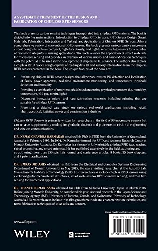 A systematic treatment of the design and fabrication of chipless RFID sensors This book presents various sensing techniques incorporated into chipless RFID systems. The book is divided into five main sections: Introduction to Chipless RFID Sensors; RFID Sensor Design; Smart Materials; Fabrication, Integration and Testing; and Applications of Chipless RFID Sensors. After a comprehensive review of conventional RFID sensors, the book presents various passive microwave circuit designs to achieve compact, high data density and highly sensitive tag sensors for a number of real-world ubiquitous sensing applications. The book reviews the application of smart materials for microwave sensing and provides an overview of various micro- and nano-fabrication techniques with the potential to be used in the development of chipless RFID sensors. The authors also explore a chipless RFID reader design capable of reading data ID and sensory information from the chipless RFID sensors presented in the book. The unique features of the book are: Evaluating new chipless RFID sensor design that allow non-invasive PD detection and localization, real-time environment monitoring, and temperature threshold detection and humidity Providing a classification of smart materials based on sensing physical parameters (i.e. humidity, temperature, pH, gas, strain, light, etc.) Discussing innovative micro- and nano-fabrication processes including printing suitable for chipless RFID sensors Presenting a detailed case study on various real-world applications including retail, pharmaceutical, logistics, power, and construction industries Chipless RFID Sensors is primarily written for researchers in the field of RF sensors but can serve as supplementary reading for graduate students and professors in electrical engineering and wireless communications.