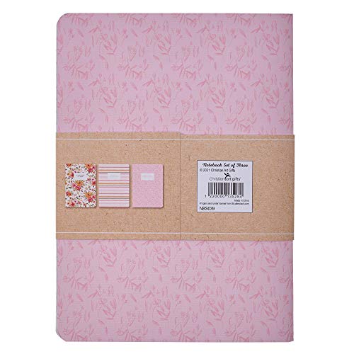 The He Leads Me Pink Floral Large Notebook Set will become a treasured vessel for your cherished memories. These handy notebooks are thin enough to slip into a handbag or briefcase but big enough to hold hours of writing. The set of three notebooks is arranged around a pink floral theme. The first notebook in the set is decorated with vibrant red, orange, and pink bouquets accented in gold foil. The sentiment is gold foiled and placed in a white frame with an elegant gold foiled border. He leads me beside still waters Psalm 23:2 The second notebook in the set features a pink, orange, olive green, and gold foiled striped design covering both the front and back covers. The sentiment is printed in pink and placed in a white frame with an elegant gold foiled border. My grace is sufficient for you 2 Corinthians 12:9 The last notebook in the set features a tone-on-tone pink floral design on both the front and back covers. The sentiment is printed in pink and placed in a white frame with an elegant gold foiled border. Blessed is the one who trusts in the LORD Jeremiah 17:7 Each book in the set holds 64 lined pages that feature a sweet pink bouquet printed at the top of each page. The notebook set is bound together with a tan-colored o-wrap. Assign each notebook to a different task: notebook, food diary, journal, planner, to-do list, workout log, travel log, homework book, shopping list, budget planner; the uses are infinite. The He Leads Me Pink Floral Large Notebook Set will delight any woman who receives it as a gift. The sweet design and encouraging sentiments will cheer her mind and uplift her soul. Give a set as a birthday gift to a friend in your office, or wrap a set as a meaningful Christmas gift for a teacher. The He Leads Me Pink Floral Large Notebook Set will be their go-to place for quick note taking. Pink floral color scheme Three notebook set Heavy-duty cardstock covers 64 lined pages Wrapped in tan-colored o-wrap Set size: 8.5″ x 6.2″ x 0.6″ (216 x 157 x 15 mm) Individual notebook size: 8.5 x 6.1″ x 0.15″ (216 x 155 x 4 mm)
