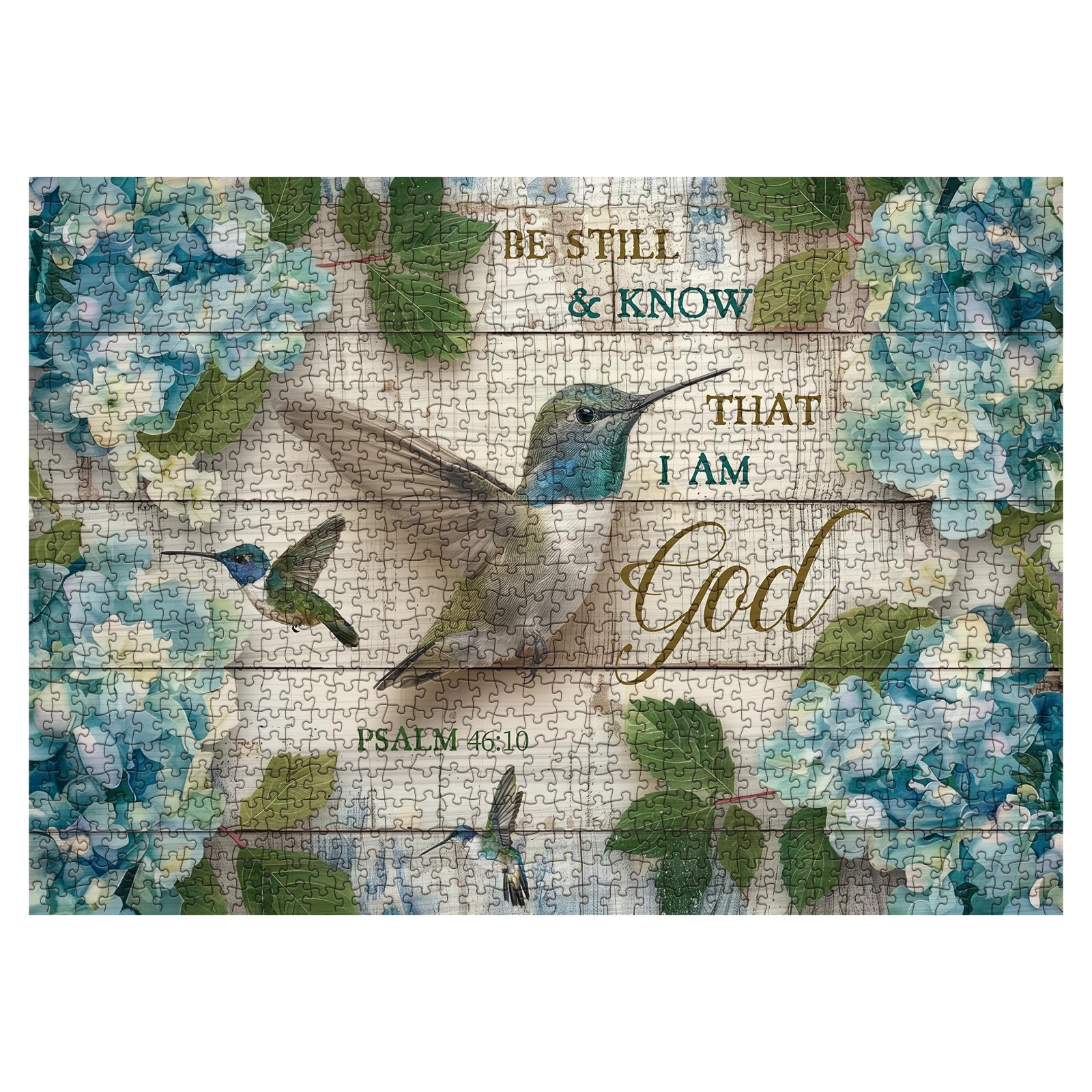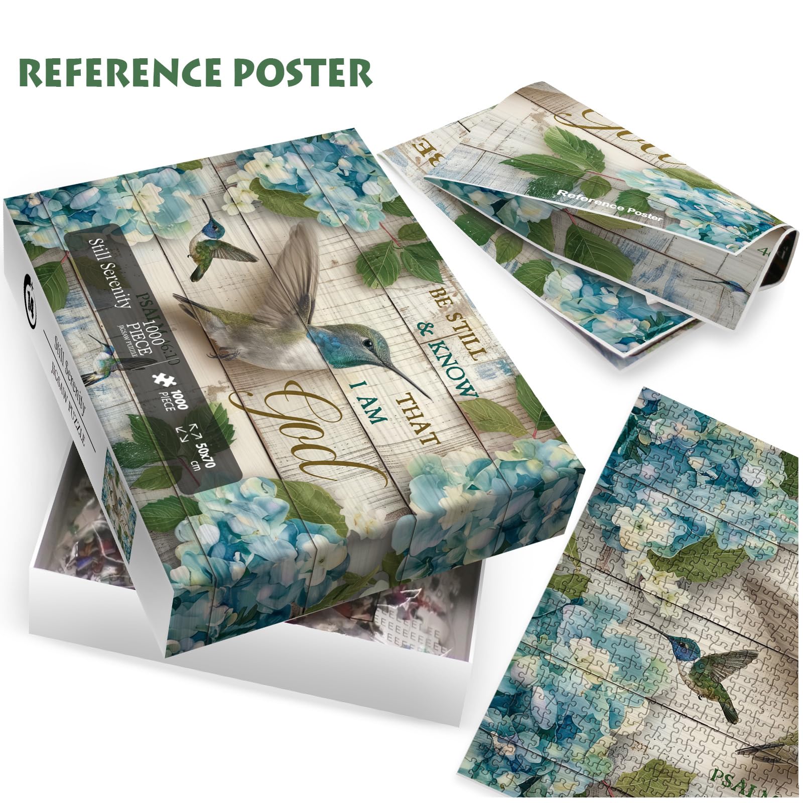 - Hummingbird Jigsaw Puzzle: Find tranquility and inspiration with our puzzle, featuring Psalm 46:10. This vibrant 1000 pieces puzzle highlights beautiful hummingbirds and hydrangeas, offering a relaxing and reflective experience. Enjoy the elegance and wisdom of the scripture as you assemble this serene scene