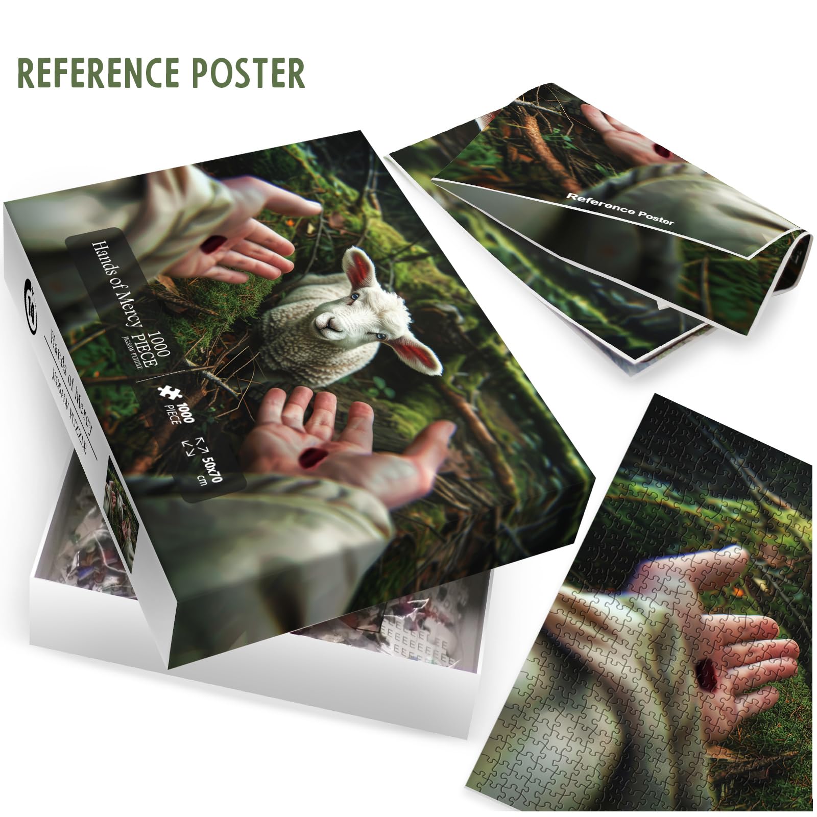 - Christian Jesus Sheep Jigsaw Puzzle: Immerse yourself in this serene yet powerful scene, where the hands of a shepherd reach out to a gentle lamb, symbolizing peace, sacrifice, and redemption. This jigsaw puzzle, with its vivid colors and intricate details, offers both a spiritual journey and a satisfying challenge. Perfect for puzzle enthusiasts and those who appreciate meaningful art, this piece is an ideal addition to your collection