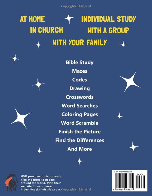 Do you want your kids to know more about Christmas than Santa Claus, presents, and Christmas trees? Are you looking for an effective and easy-to-understand resource to use at home or at church? How is the book structured? As readers learn about the true meaning of Christmas, they will use this fun and effective resource as a guide to: Read scripture from their own Bible, Answer questions about what they read, Learn to apply it to their own life, and Complete fun Christmas activities! What activities are included? This 8.5 x 11 book includes nearly 50 pages of study and activities such as: Bible study pages Mazes Codes Drawing Crosswords Word searches Coloring pages Word Scramble Finish the picture Find the differences Anagrams And more What events are included in the readings? John’s birth announced to Zacharias (Luke 1:1-25) Christ’s birth announced to Mary (Luke 1:26-56) Birth of John the Baptist (Luke 1:57-80) Jesus is born and angels appear to the shepherds (Luke 2:1-20) Simeon sees Jesus (Luke 2:21-35) Wise men go to Jesus (Matthew 1:18-25, 2:1-12) Flight into Egypt and home to Nazareth (Matthew 2:13-23) What materials are required? To complete the activities and bible study, you will need a Bible, a pencil, and crayons or colored pencils. (Markers are not recommended since they can bleed through the page.) Answers to the activities are provided in the back of the book. Can this book be used with varying age ranges? Absolutely! The reading level and activities were created for kids ages 8 to 12. Readers younger than this age range may need a little extra help. Readers older than this age range may find some (but not all) of the activities a little easy, but the message and the bible study portion will still be appropriate. This book is a great resource to use at home as a family, in a small group (even with varying age ranges), or at church (as Sunday School lessons, for example). It would also make a great gift! Can a child complete this book on their own? This book is designed so that each section begins with reading specific verses in the Bible. If the child knows how to look up and read a scripture reference on their own (such as Luke 1:1-12), then the answer is yes! However, we recommend that an adult go through the book with the child to provide guidance and answer any questions they may have. It can be a great conversation starter! Who created this book? Hide and Seek Ministries (HSM) developed this activity book as a teaching tool to assist parents, caregivers, teachers, and leaders in equipping young minds with biblical knowledge about the powerful and life-changing meaning of Christmas. HSM hopes to provide resources that guide young readers in developing a personal relationship with the Lord and help them boldly follow Jesus in faith, hope, and love. HSM is a nondenominational ministry. We believe the Bible is the inspired Word of God. We believe that Jesus Christ is the only way to salvation, and we are saved by grace through faith. Find out more by visiting our website.