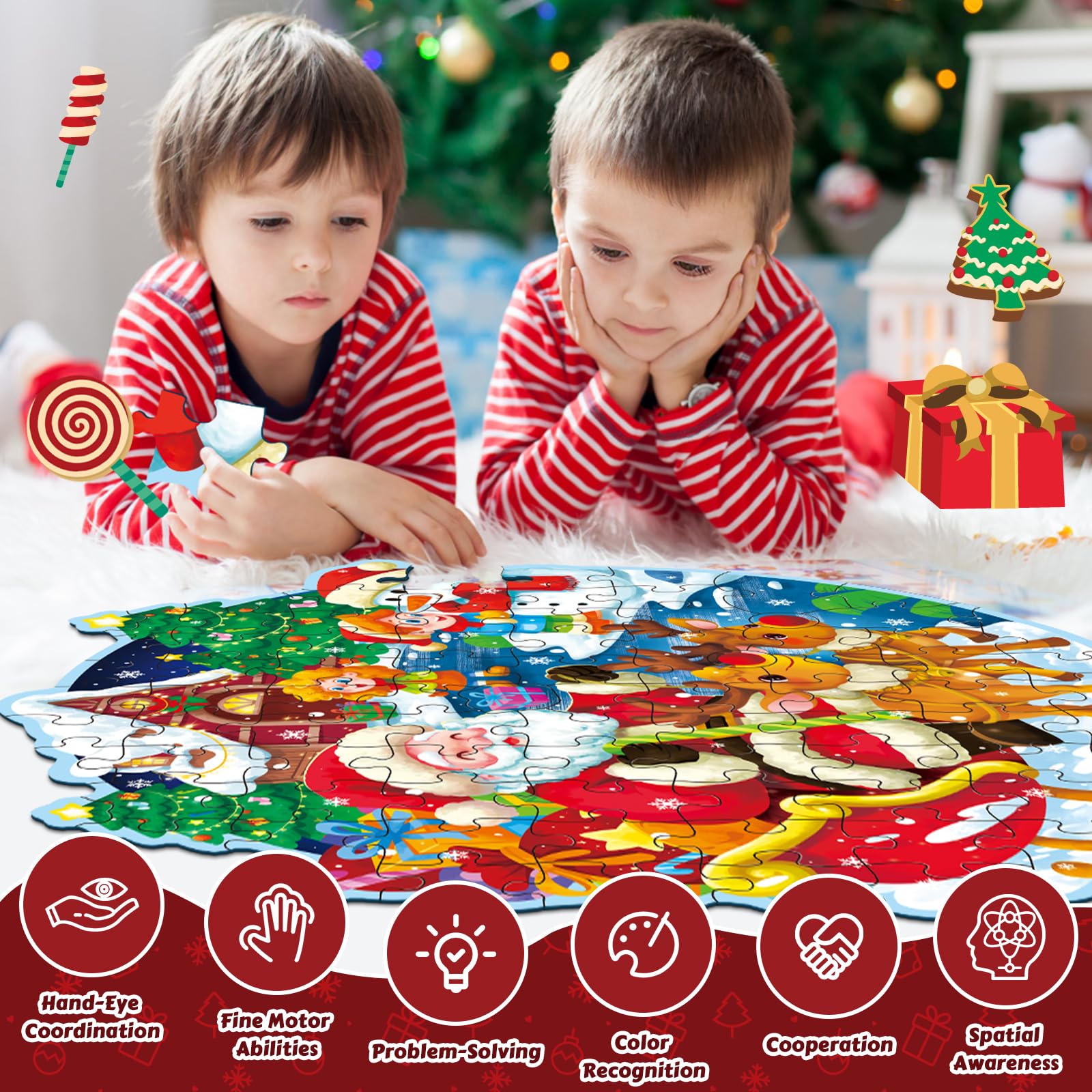 - [(Social & Cooperative Play)] This puzzles for kids ages 6-8 & 3-5 is great for group play and social interaction! Kids can work together with siblings or friends to solve the puzzle, learning teamwork, communication, and collaboration. It’s a wonderful way to encourage cooperative play and bonding, making it a perfect activity for family gatherings during the Christmas season