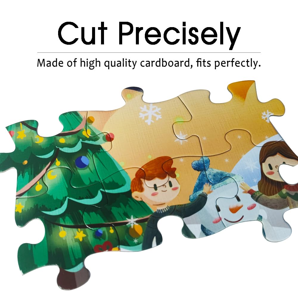 Merry Christmas Product Specification Package Contains: 72 piece puzzle with gift box. Complete Size: 17” X 24”. Box Size: 10.2” X 3.14” X 7.87”. Recommended Age: 3-8 Years Old.