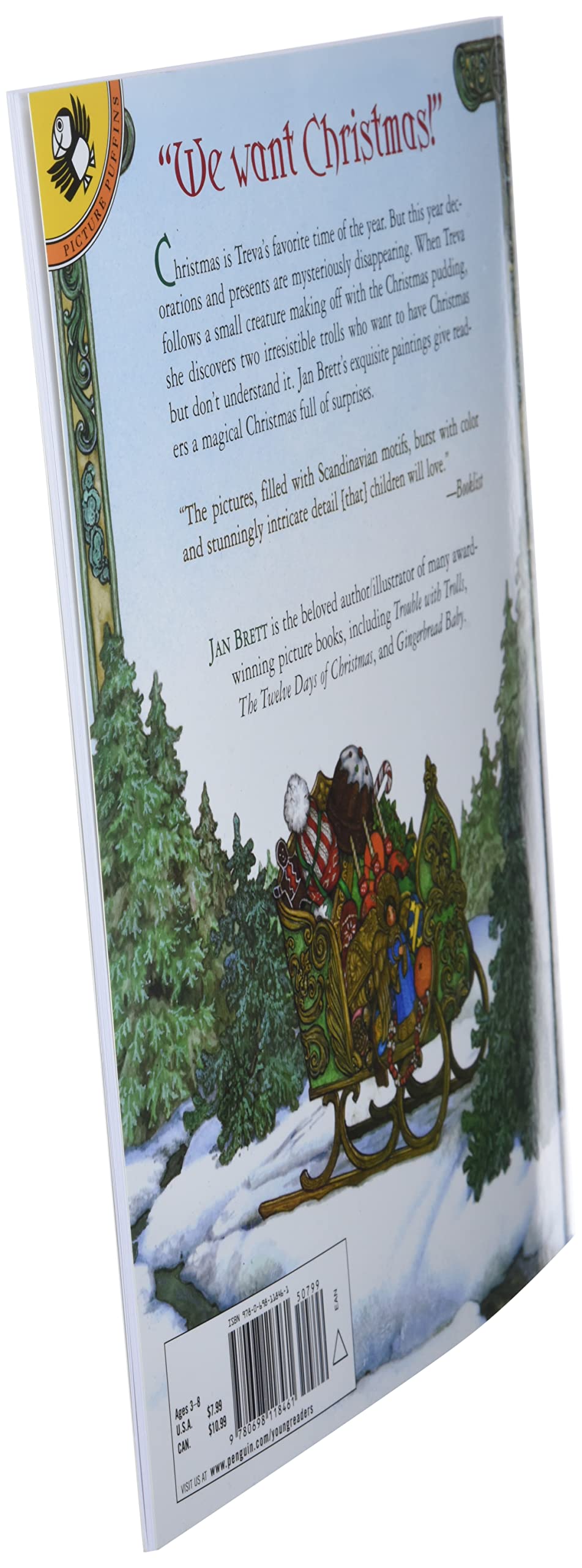 Christmas is Treva’s favorite time of the year. But this year, decorations and presents are mysteriously disappearing. When Treva follows a small creature making off with the Christmas pudding, she discovers two irresistible trolls who want to have Christmas, but don’t understand it. Jan Brett’s trademark luminous paintings give readers a magical Christmas full of surprises.