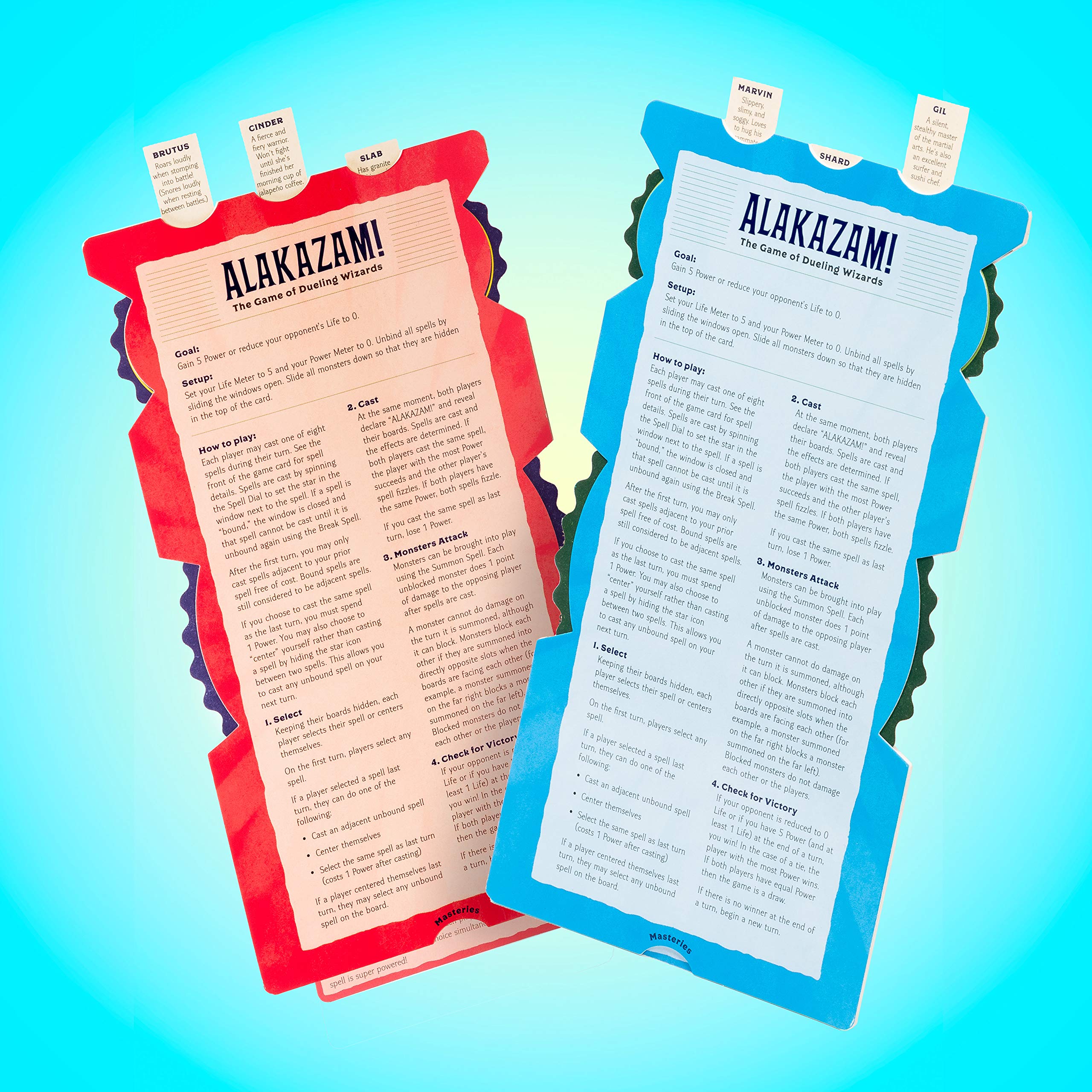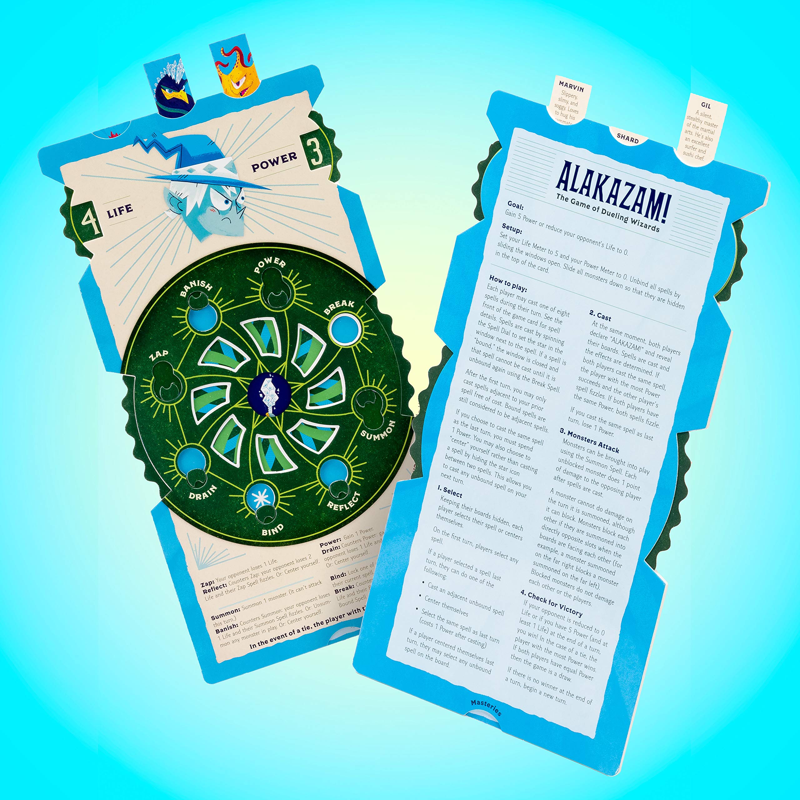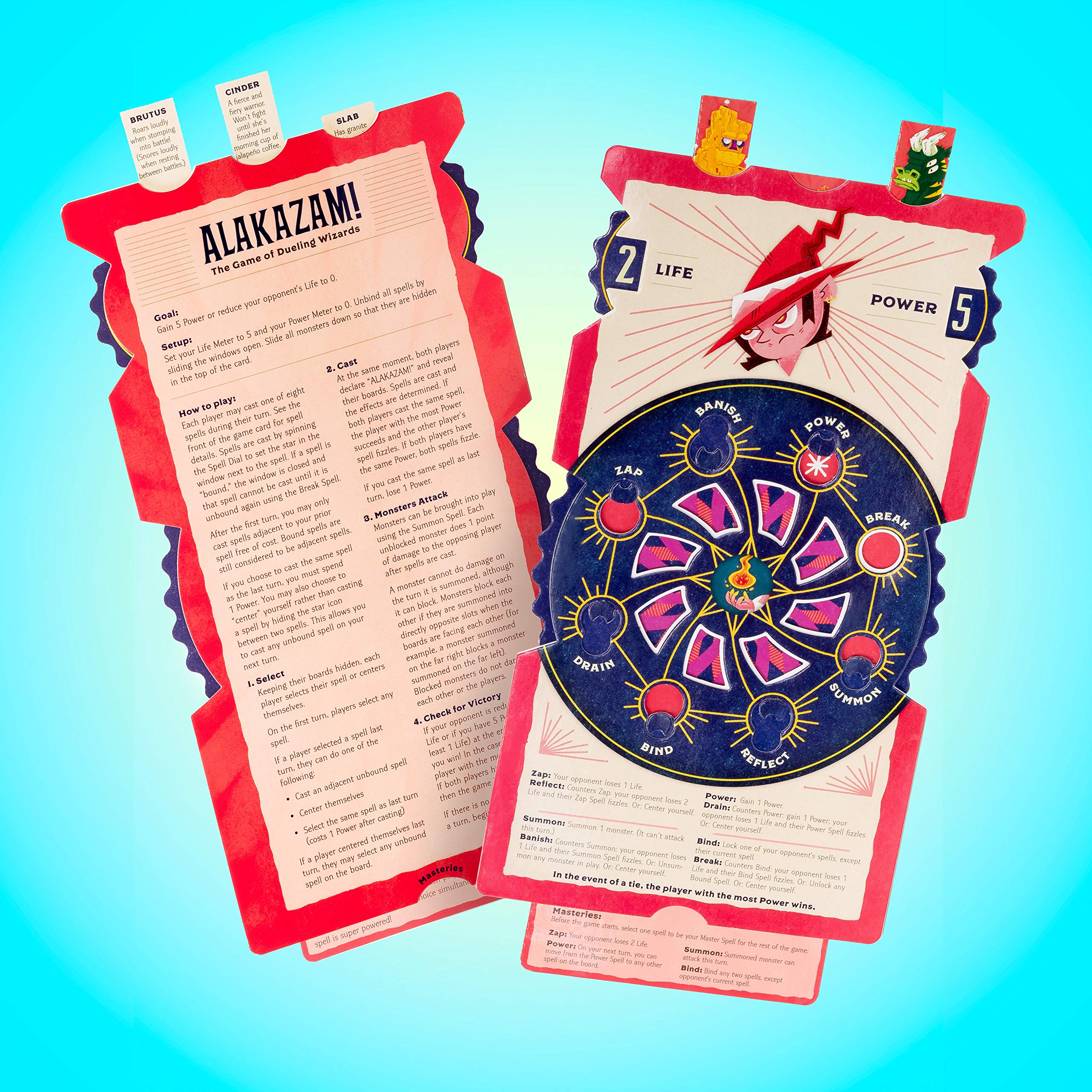 It’s a wizard-versus-wizard battle to the finish! In this fast-paced and magical game for two, players use fully contained game cards with built-in spinners and tabs to choose the best spell to take down their opponent, casting damaging spells, defending with counter-spells, and even summoning monsters to battle with a mighty cry: Alakazam! Spellbinding entertainment for aspiring wizards ages 6 and up, Alakazam! Dueling Wizard card game comes with two game cards, is for two players and includes optional advanced rules for players who become experienced with the game. The game takes about 15 minutes to play and measures 5 5/8 ” x 10 5/8 ” for travel-ready, screen-free, on-the-go fun!