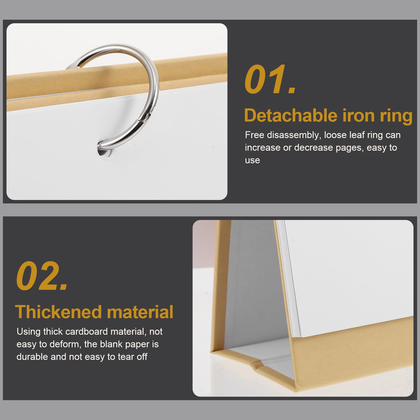 Package List 1 x leather 13 x blank papers 2 x rings Characteristics -Material: Kraft Paper blank DIY hand-painted book. -Size: About 21.00X17.00X7.00cm/8.25X6.68X2.75inch calendars making loose-leaf book. -Color: Khaki Handmade Painted Book. – You will have a good use experience because of the workmanship of this product desk flip. – It is simple in design, but it’s practical to use, which will give you a good use experience Paper. – Lightweight and portable, it is very convenient for you to carry wall calendar 2022-2023. – Made of kraft paper material for a time and durable use desk calendar. – Fine workmanship and creative appearance ensure its popularity and practicality DIY Calendar Book. Goods Description desk pad calendar Wanna fine something to pass your time? How about making a unique desk calendar? If you want, the choose a durable calendar making loose-leaf book, our product can meet your demands.Blank Loose-leaf Book It is made of , ensure its durability and practicability
