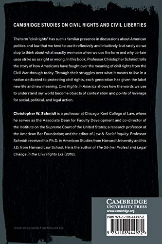 The term ‘civil rights’ has such a familiar presence in discussions about American politics and law that we tend to use it reflexively and intuitively, but rarely do we stop to think about what exactly we mean when we use the term and why certain uses strike us as right or wrong. In this book, Professor Christopher W. Schmidt tells the story of how Americans have fought over the meaning of civil rights from the Civil War through today. Through their struggles over what it means to live in a nation dedicated to protecting civil rights, each generation has given the label new life and new meaning. Civil Rights in America shows how the words we use to understand our world become objects of contestation and points of leverage for social, political, and legal action.