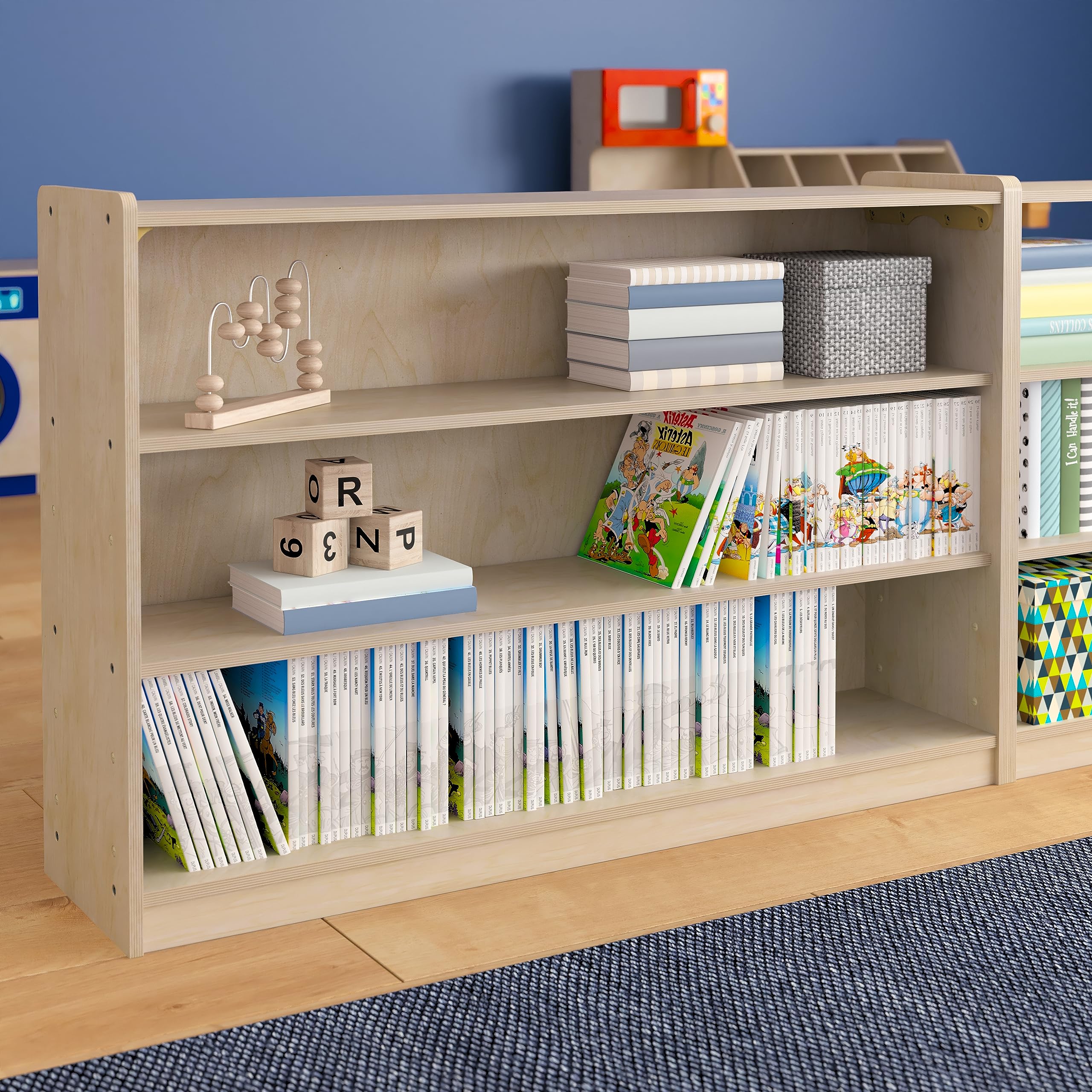 - ORGANIZATION STATION: Extra wide 3 section classroom shelving unit holds books, art supplies, games, blocks, and other items to keep learning areas clutter-free
