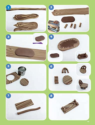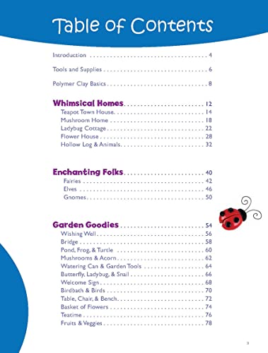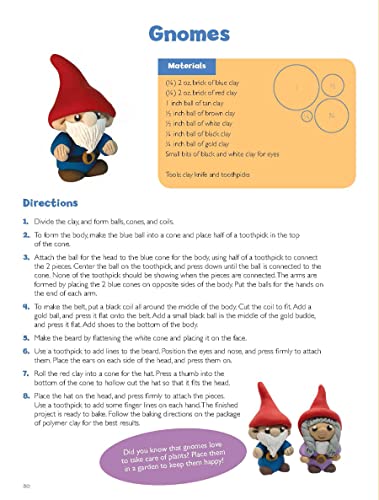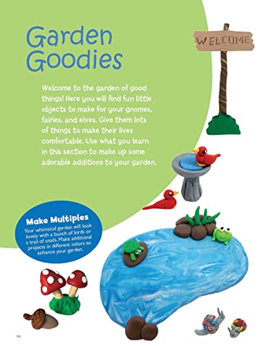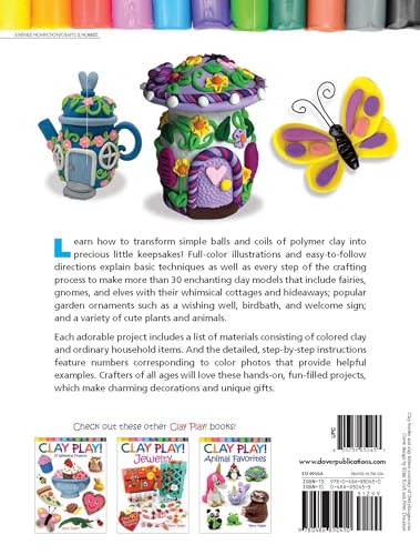 Full-color illustrations and easy-to-follow directions explain how to transform simple balls and coils of polymer clay into more than 30 enchanting keepsakes that include fairies, gnomes, and elves with their adorable cottages and hideaways; popular garden ornaments such as a mini wishing well, birdbath, and welcome sign; and a variety of cute little plants and animals. The detailed, step-by-step instructions feature numerals corresponding to color photos that provide helpful examples. Crafters of all ages will adore these fun-filled projects, which make charming decorations and unique gifts.