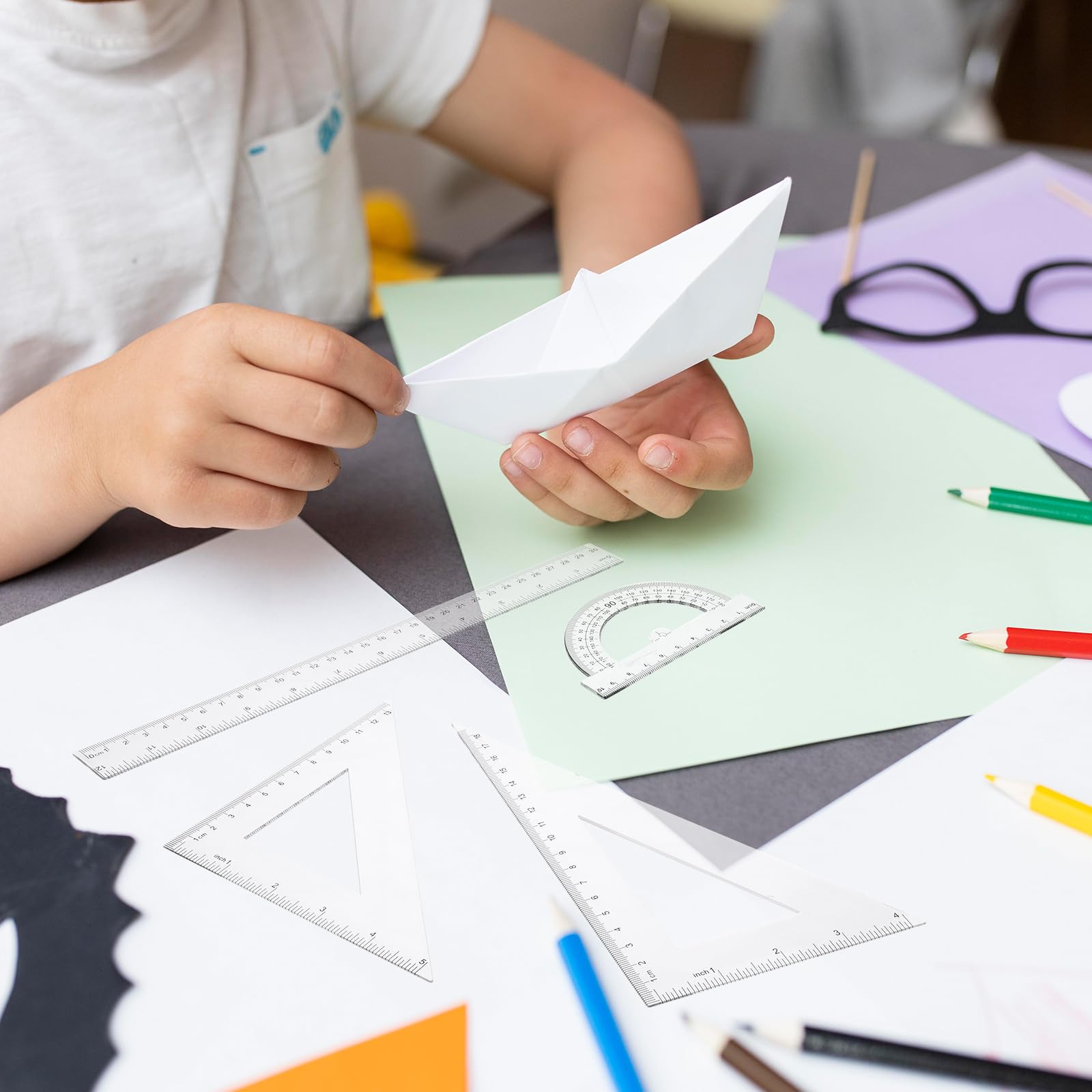 - High-Quality Material: The transparent geometry set is made of high-quality plastic, durable and sturdy, not easy to break and crack, controlled to a certain thickness, and drafting tools can be used for a long time; a practical measuring geometry kit suitable for artists, designers, architects, engineers, students, etc.